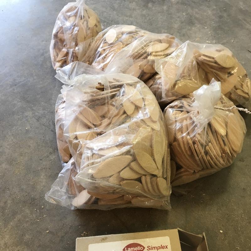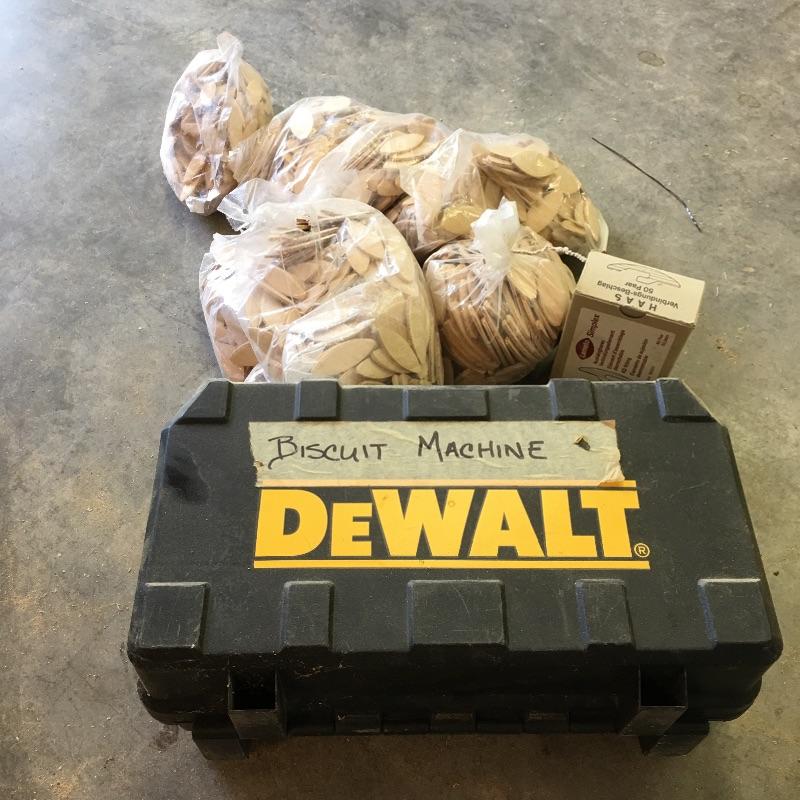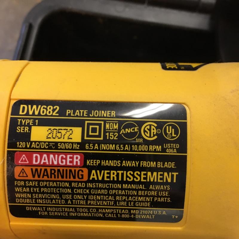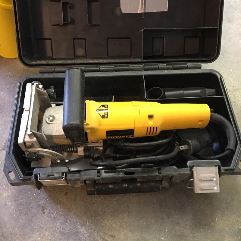 Dewalt model # DW 682 biscuit joiner with biscuits.