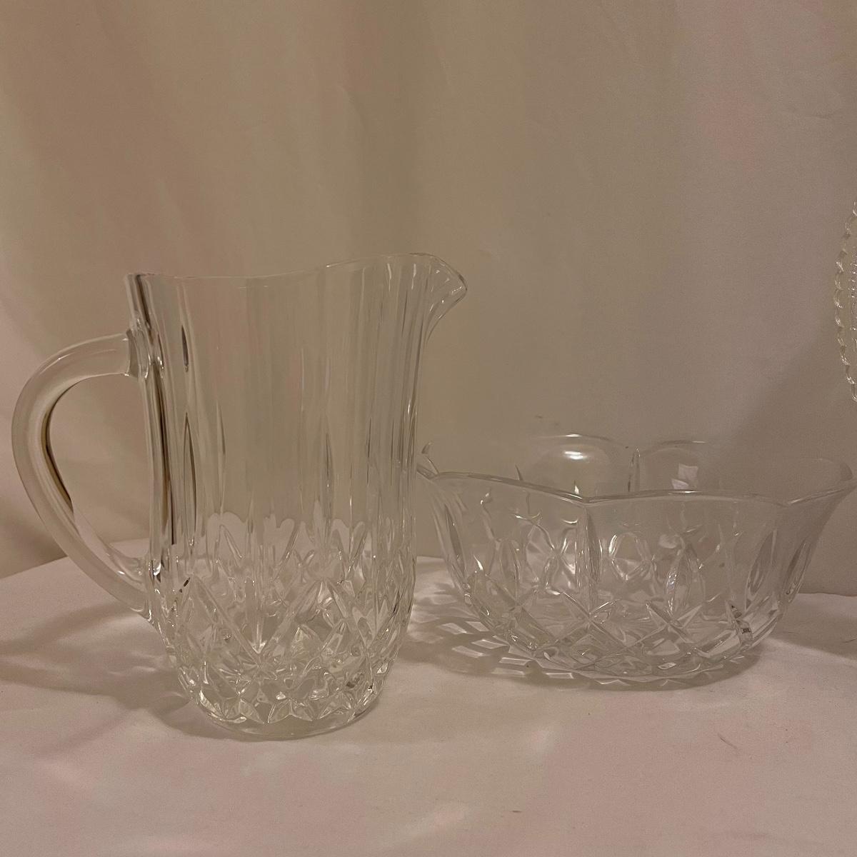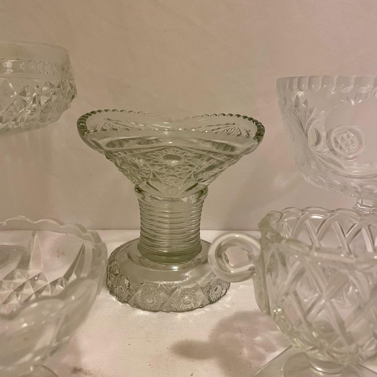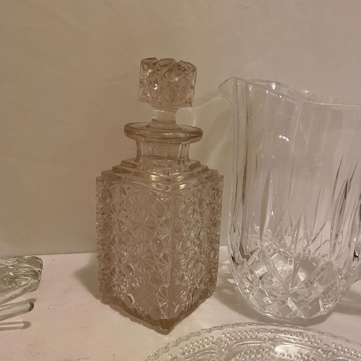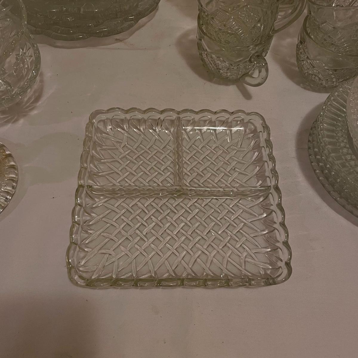 We bet dinner parties will be back with a vengeance sooner rather than later! Showcase the skills you learned over the last year with these elegant cut and formed glass sets. Lot includes a beautiful, heavy 7” tall pitcher and bowl duo, a delicately knobbed 11.5”platter with four matching plates, a punch bowl with six cups and a Sheffield, England ladle. Lot also includes lidded candy dishes, sugar creamer set, amazing glass serving utensils and more! See images. Local pick up only.