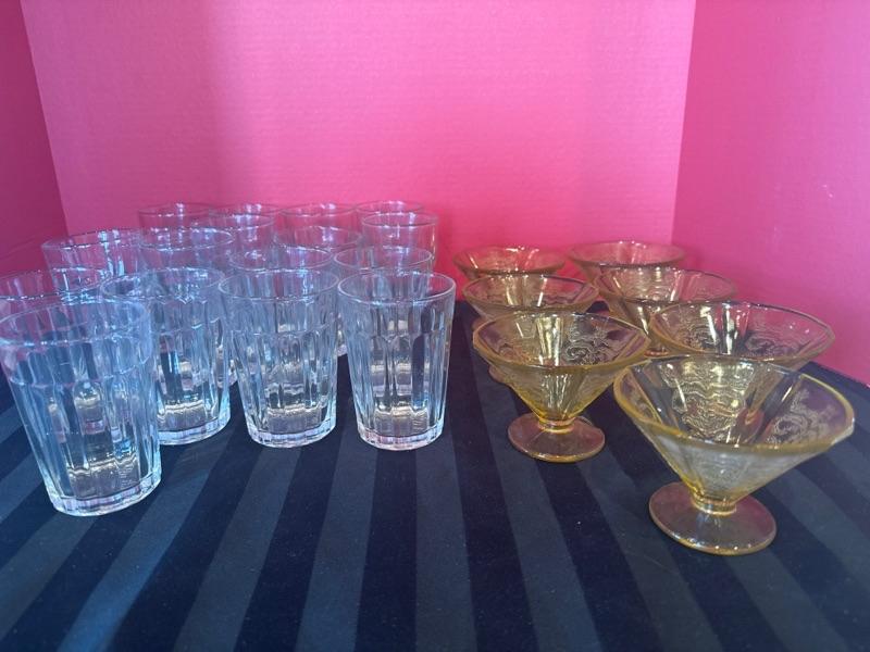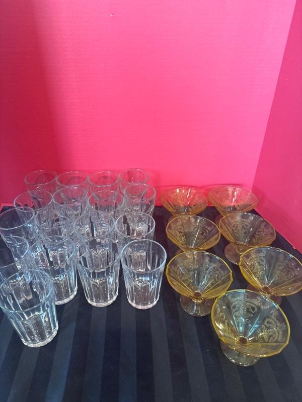 Lot 204 Vintage set depression glass Dessert cups and 17 clear Glasses