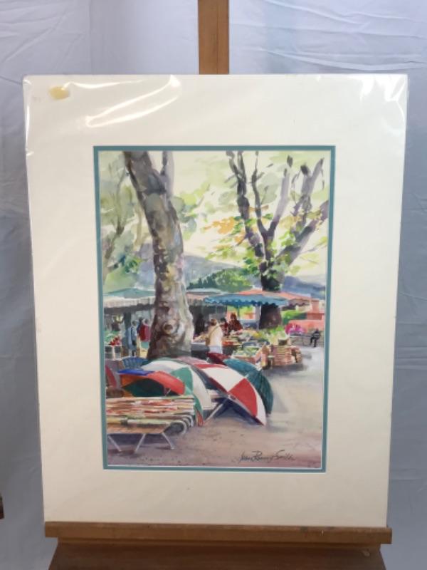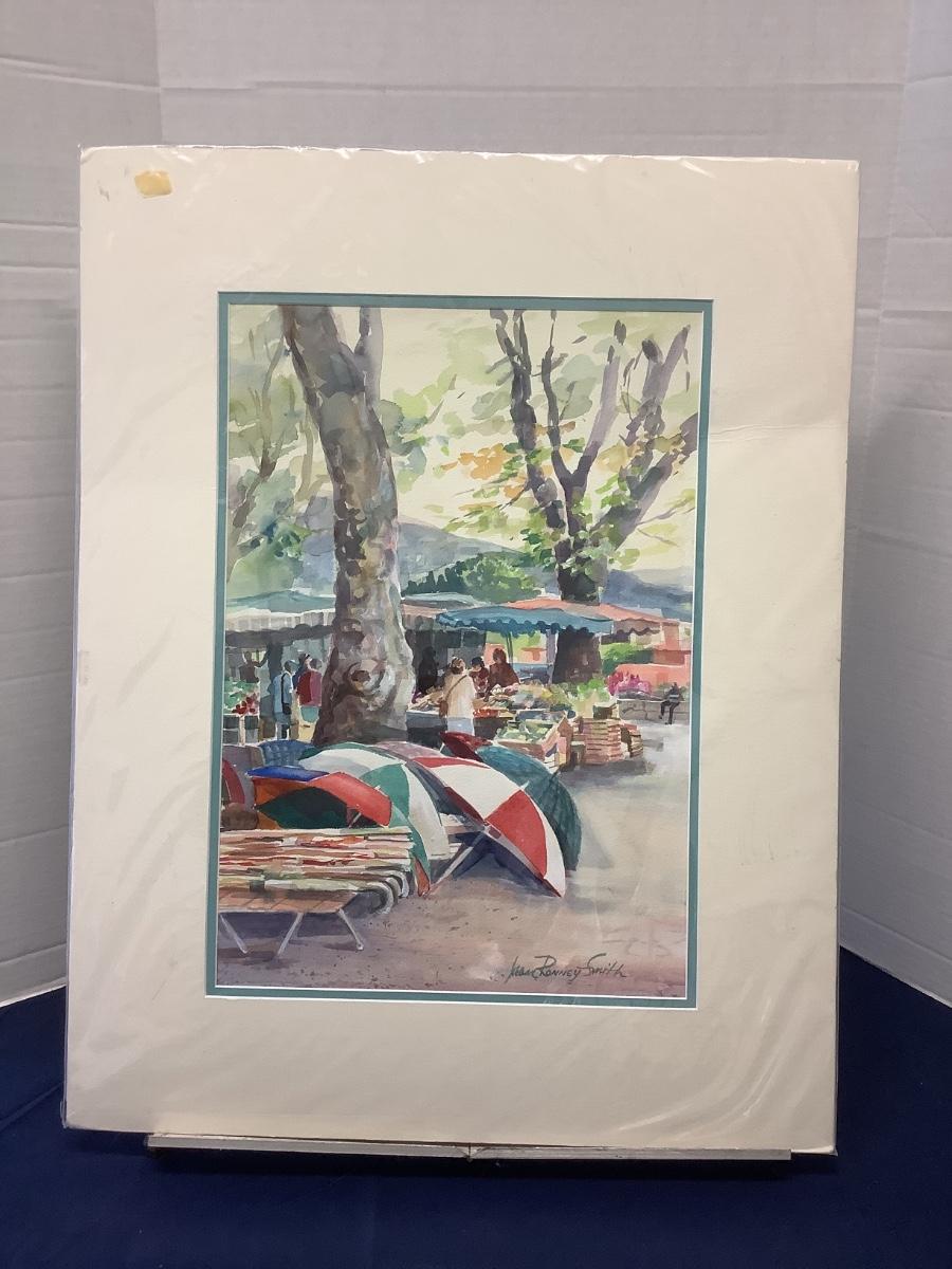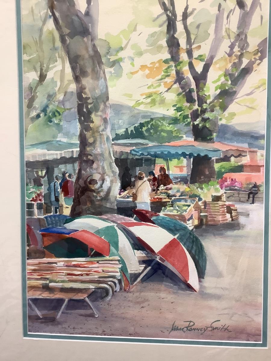Pair of Jean Ranney Smith signed original watercolor paintings. “French Market” measures 22”x28” including mat