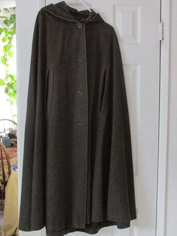 Large dark gray hooded wool overcoat. No significant wear noticed.