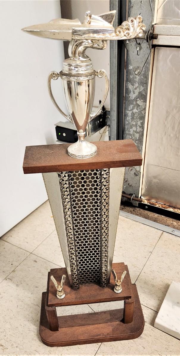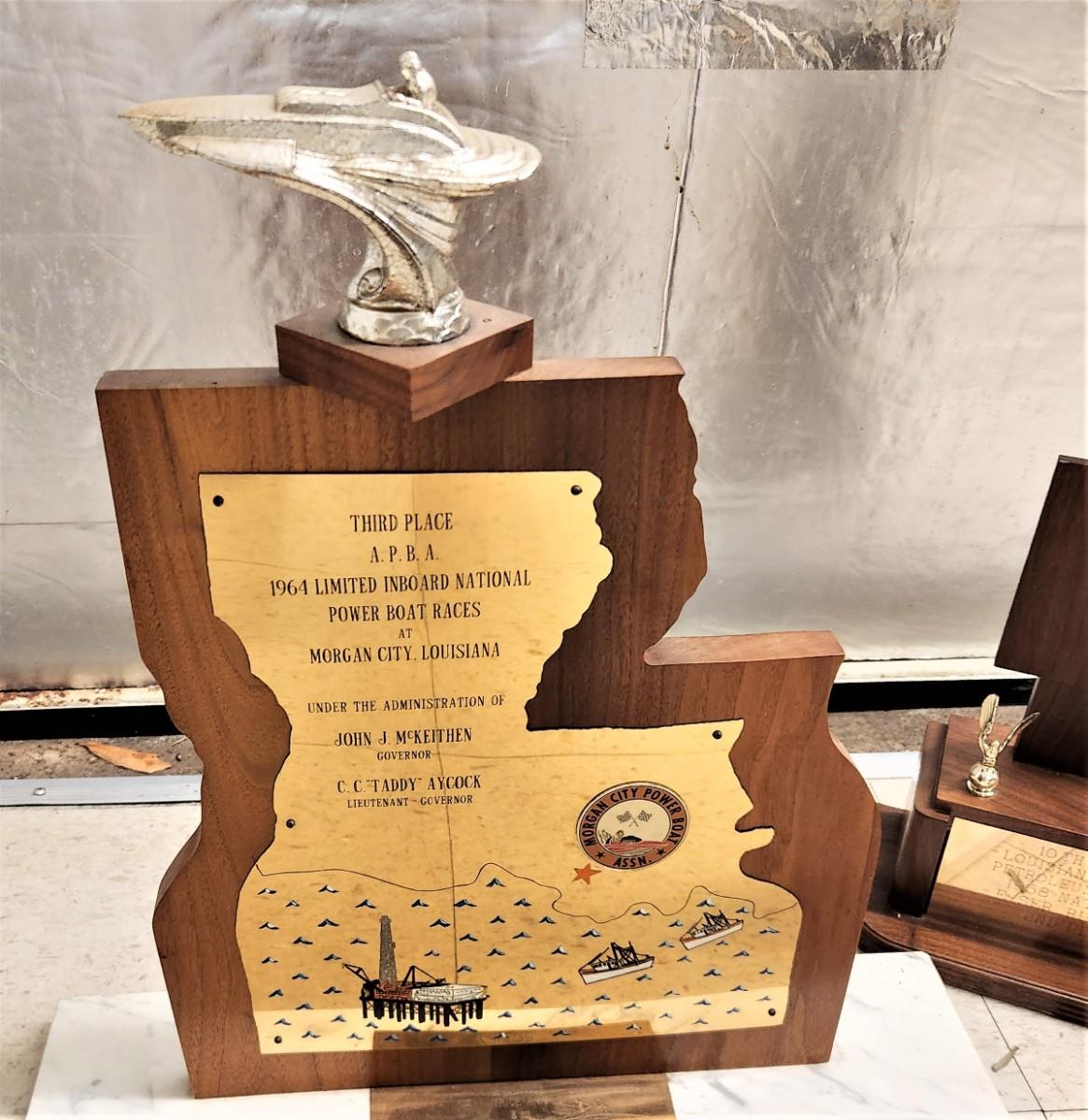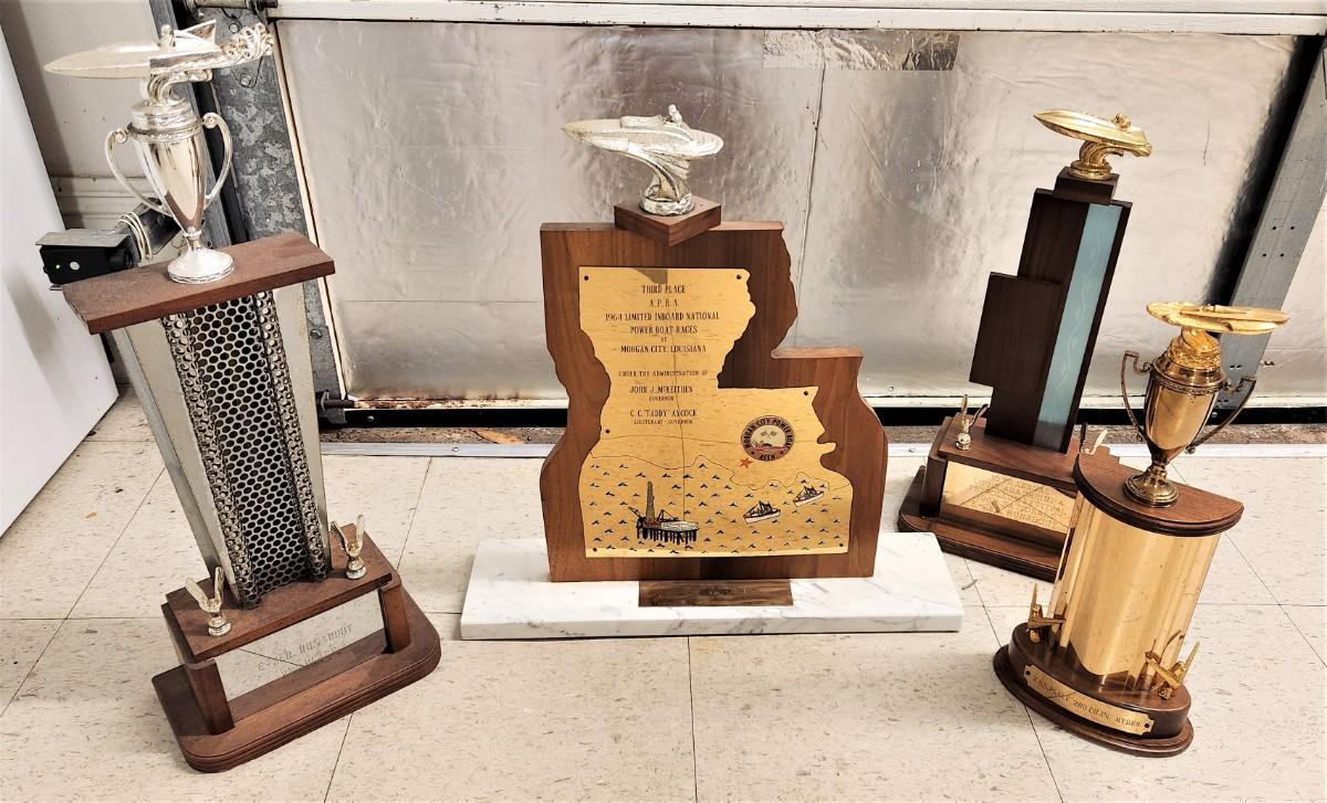 You get all you see here - 4 vintage boating trophies, Midcentury. 3rd place, 1964 Morgan city, 2nd place 10 annual Petroleum Festival 1968, 2nd place 280 cu. in. hydro. All have a great look.