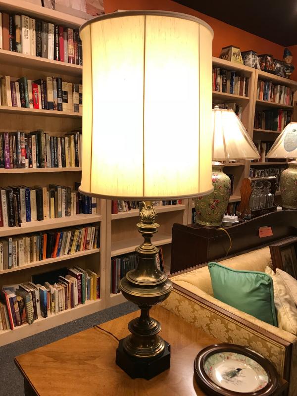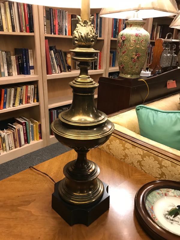 Lot 204- MC Stiffel Antique Brass Lamp with Shade