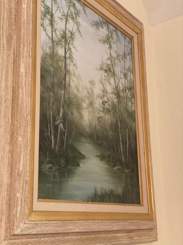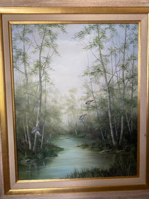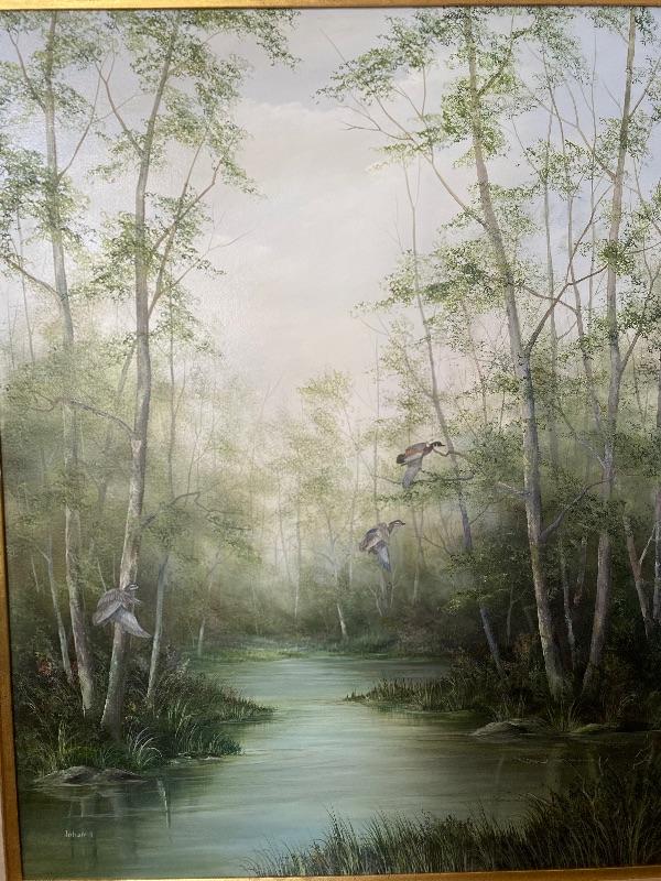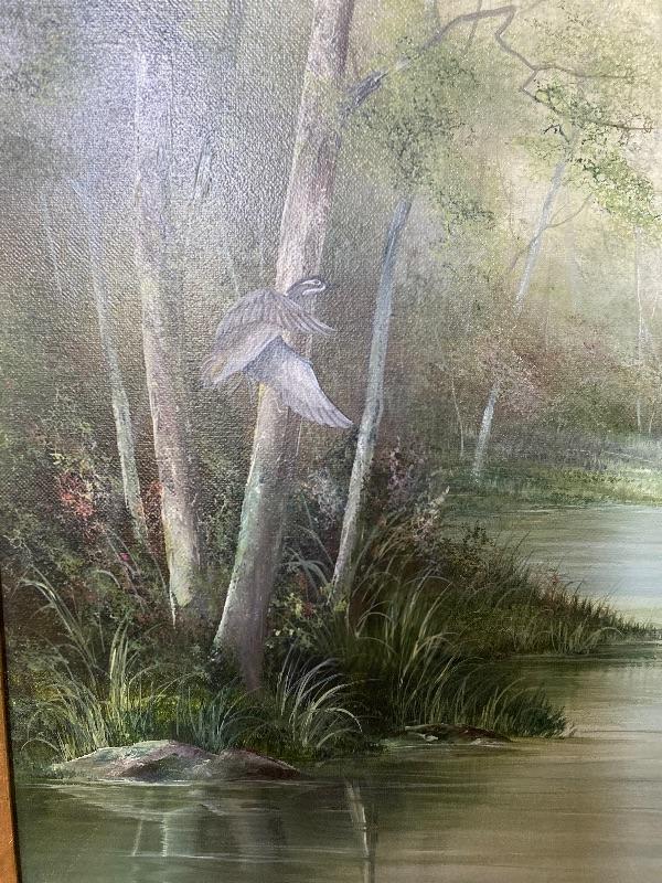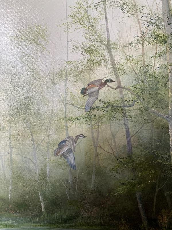 Original Painting of Waterfowl by Johanna Obeck titled " Late Summer Woodies" measuring 35" x 42" tall
