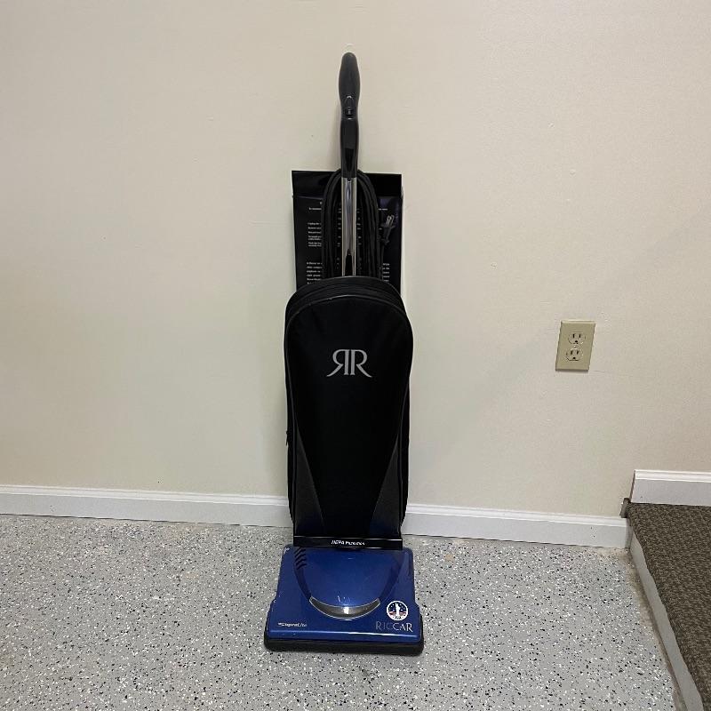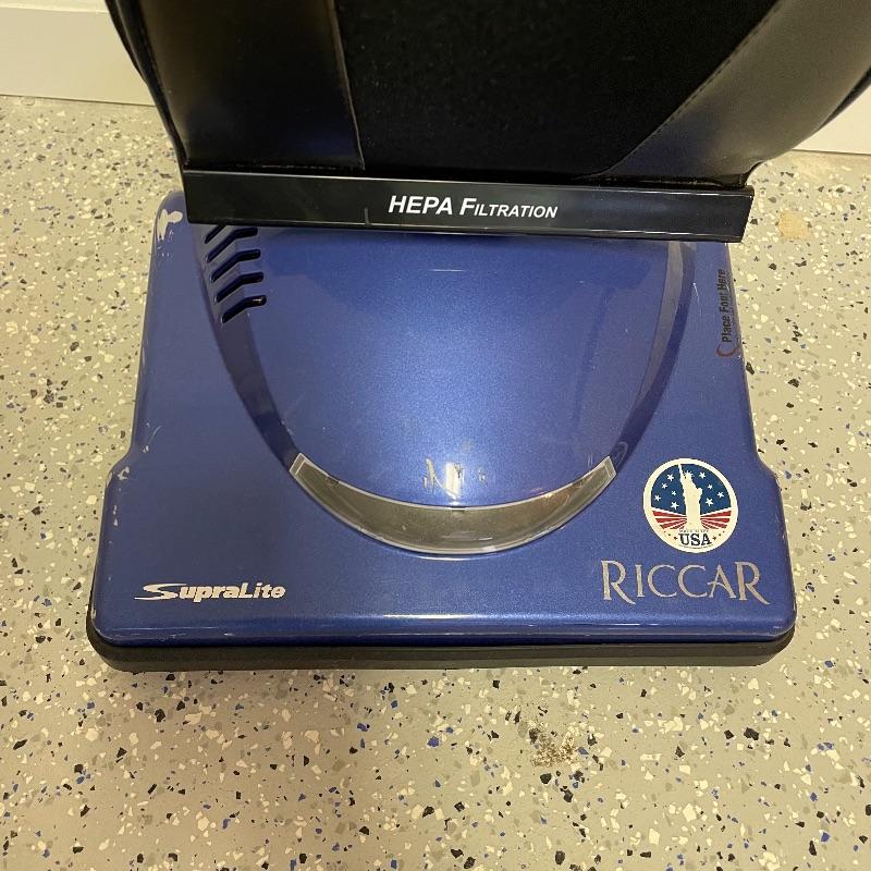 American made Riccar SupraLite Vacuum with HEPA filtration and six extra vacuum bags. Vacuum turned on when tested and outside of the twisted cord, it appears to be in nice condition. The cord seems to have been twisted and has a small rip with tape. Some electrical tape may be needed or cord replaced. See images. Local pick up only.