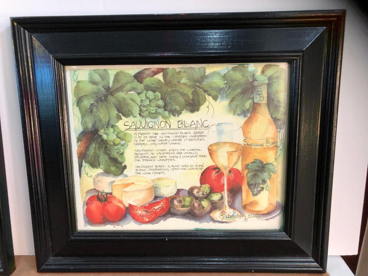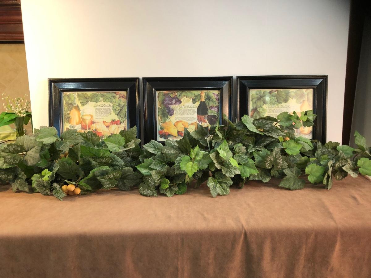 Lot 204. Set of 3 Wine-themed Prints and Silk Grape Vines