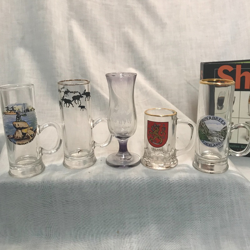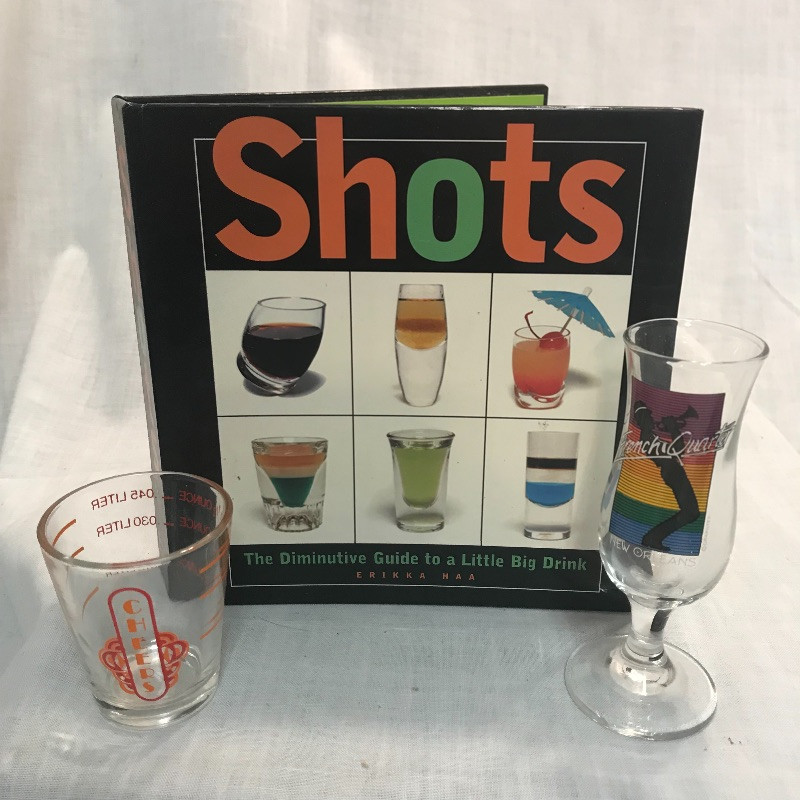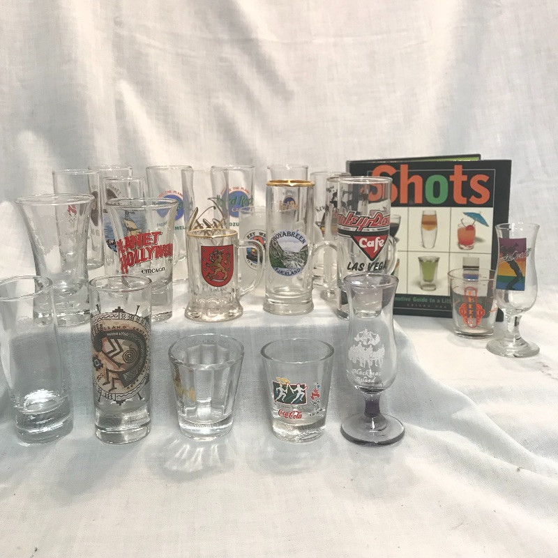 Shots - The Diminutive Guide to a Little Big Drink starts with bar tending tips and has all the recipes you want and some you haven’t heard of... yet. Lot includes a plethora of shot glasses from across the globe from the Grand Canyon to Johannesburg, see images. Shipping available.