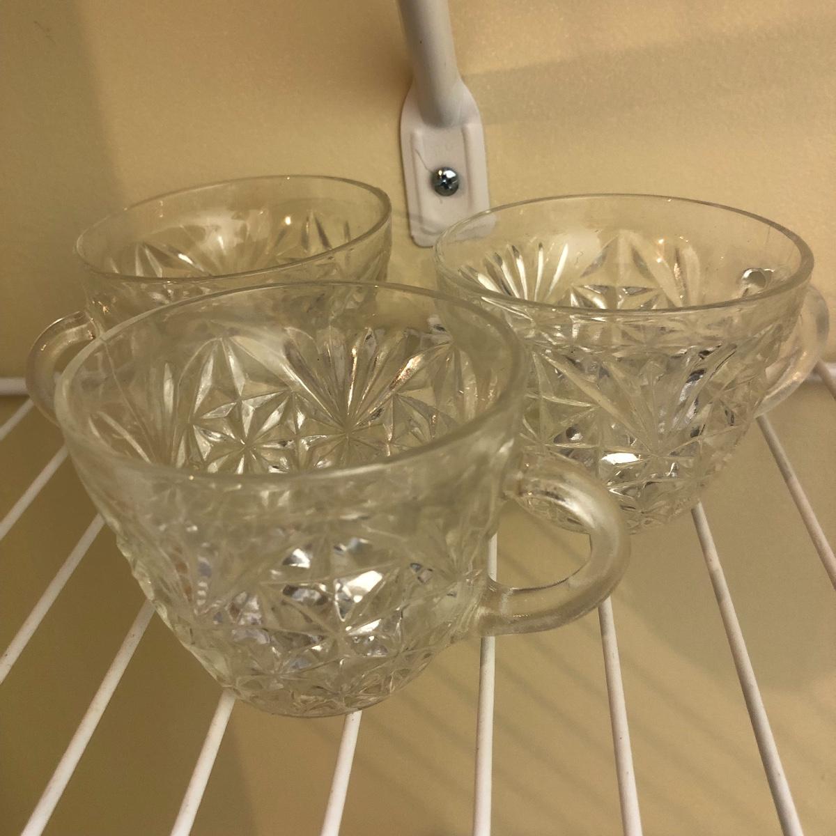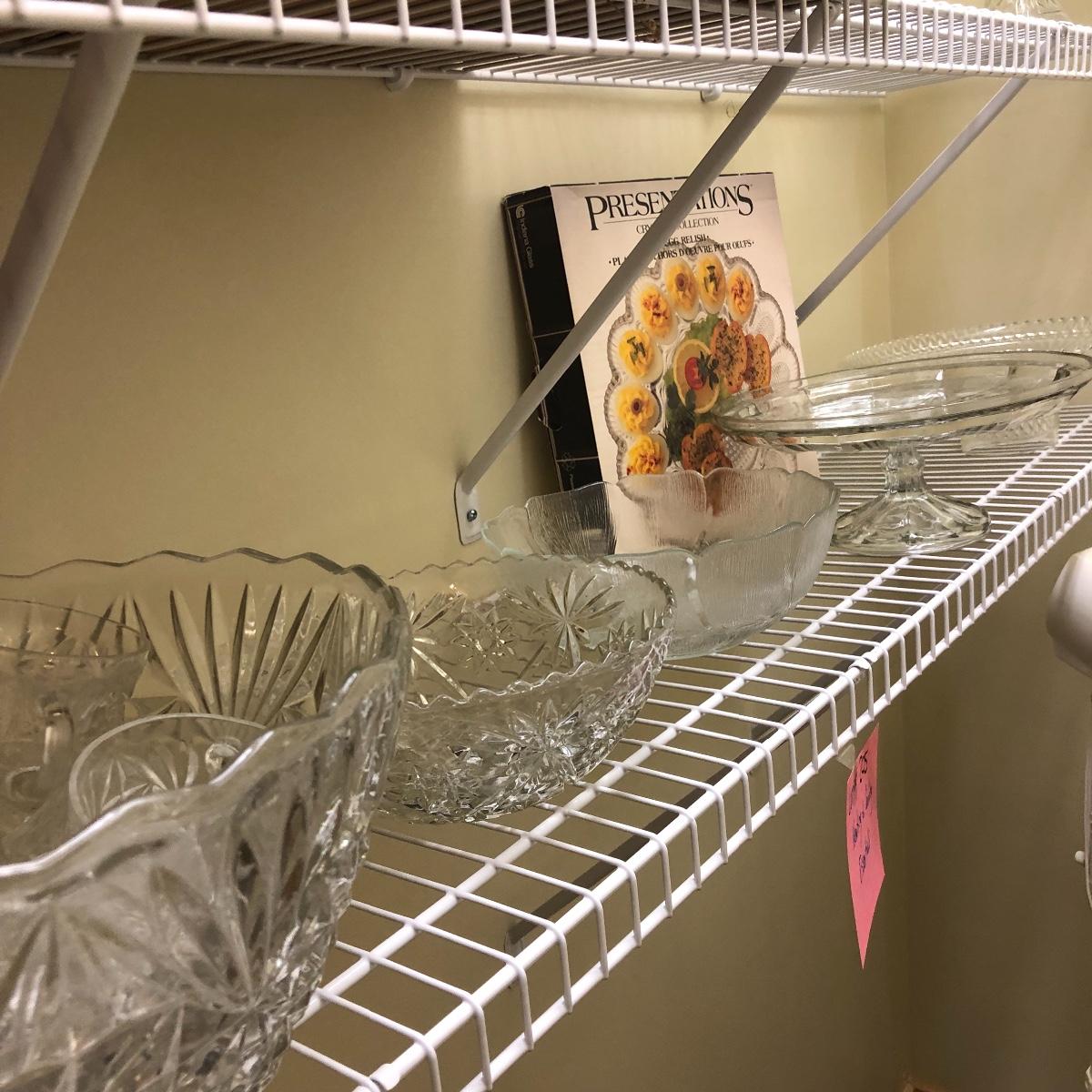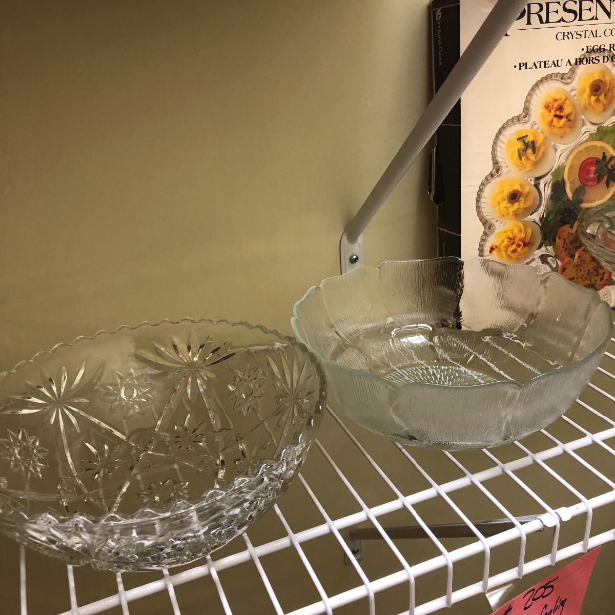 Entertain in style with this lot! It includes three cake plates, two trifle bowls, deviled egg plate, punch bowl with ladle and cups, and two serving bowls. All Items are glass except for the punch bowl ladle. There are eight cups accompanying the punch bowl. Local pick up only.