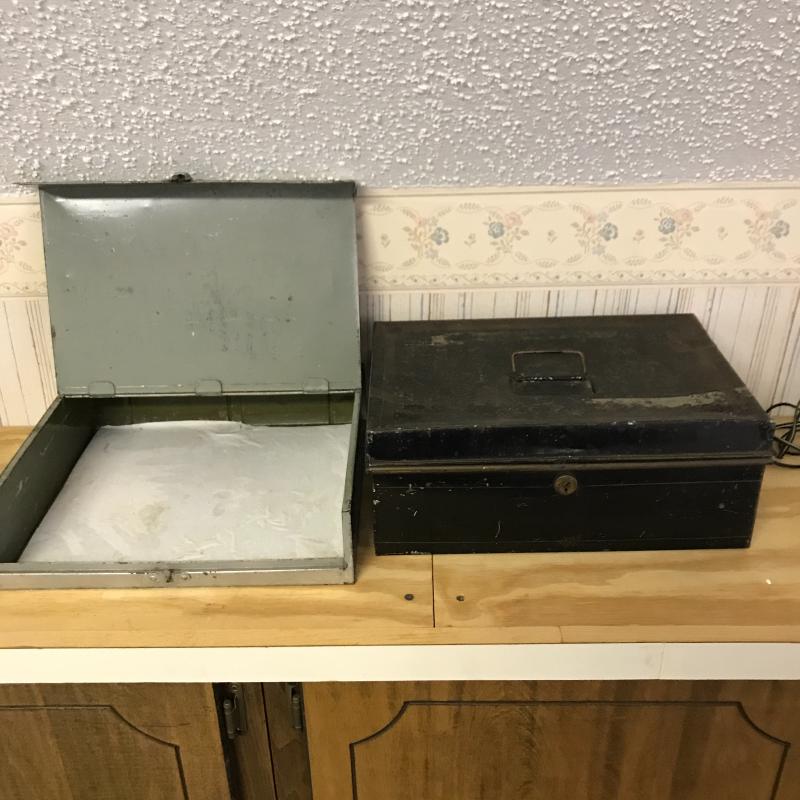 Get creative with these cool metal storage boxes. Rough shape but still sturdy. Shipping or local pick up in Flat Rock, NC. Black box is 13.5” l x 9”w x 5.5”h.