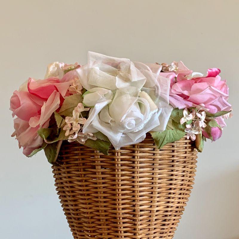 Pink & white roses & a length of pink veil netting