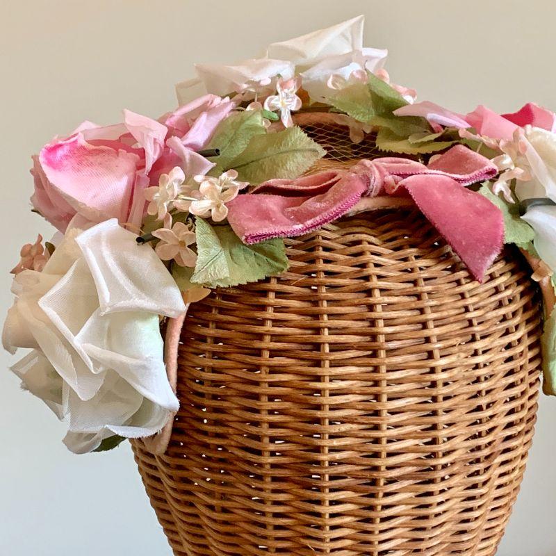 LOT 204 VINTAGE PINK FLORAL HAT & NETTING