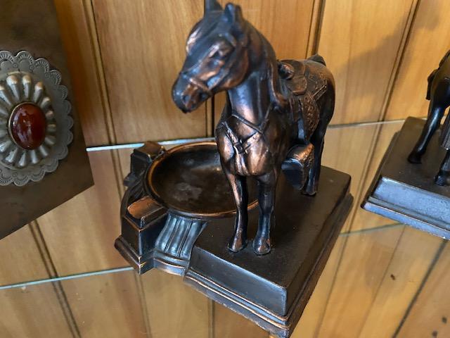LOT 204 Western theme Brass horse bookends and  kitchen matchbox covers