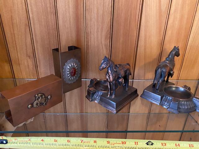 LOT 204 Western theme Brass horse bookends and kitchen matchbox covers