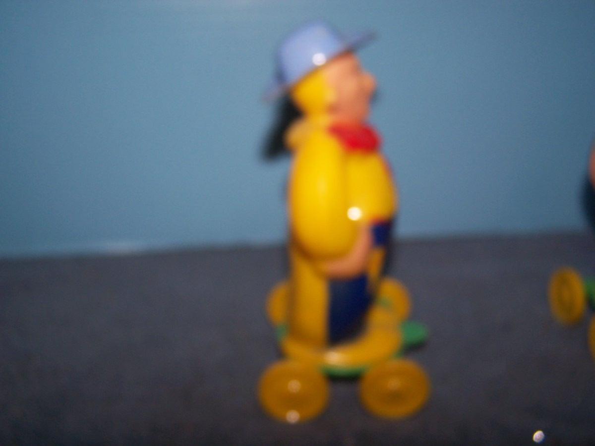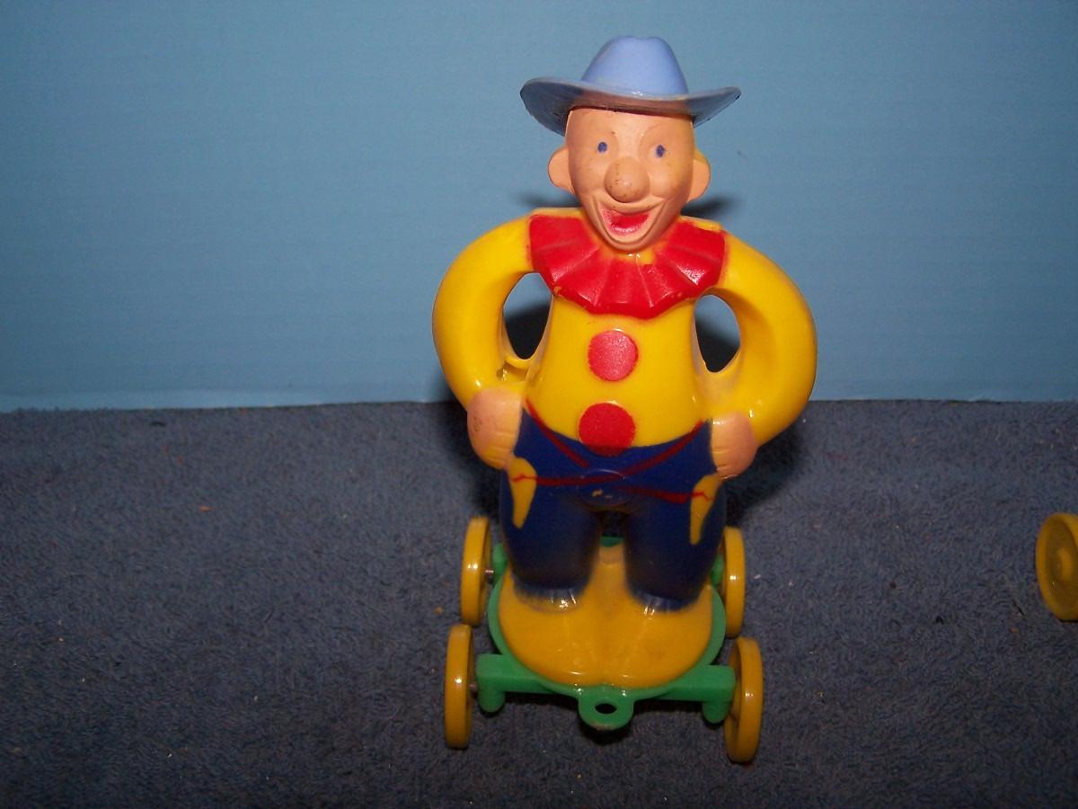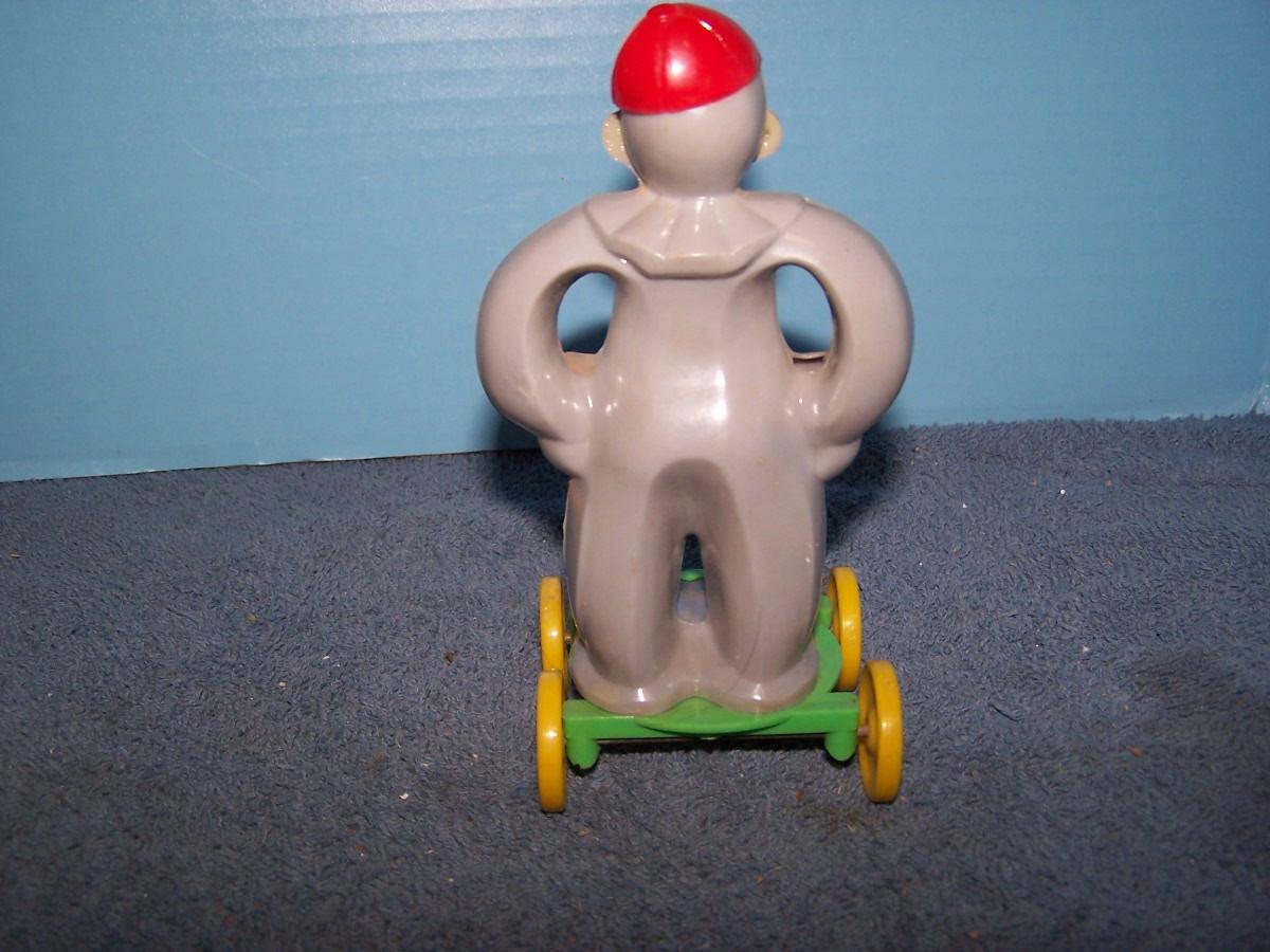 THESE ARE WONDERFUL VINTAGE HARD PLASTIC PULL TOYS!!! MARKED-ROSBRO.. 5 7/8'' TALL.. SLIGHT WEAR.. ALL TOYS HAVE BEEN PLAYED WITH..