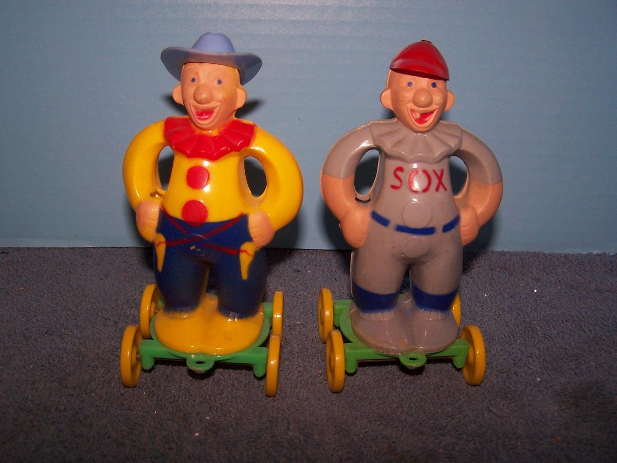 LOT 204 ROSBRO HARD PLASTIC PULL TOYS FIGURES CANDY HOLDERS