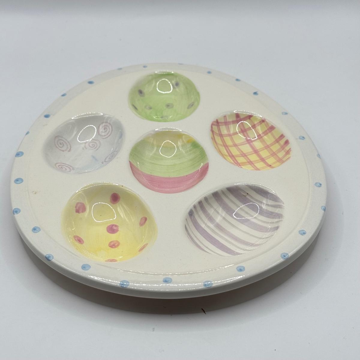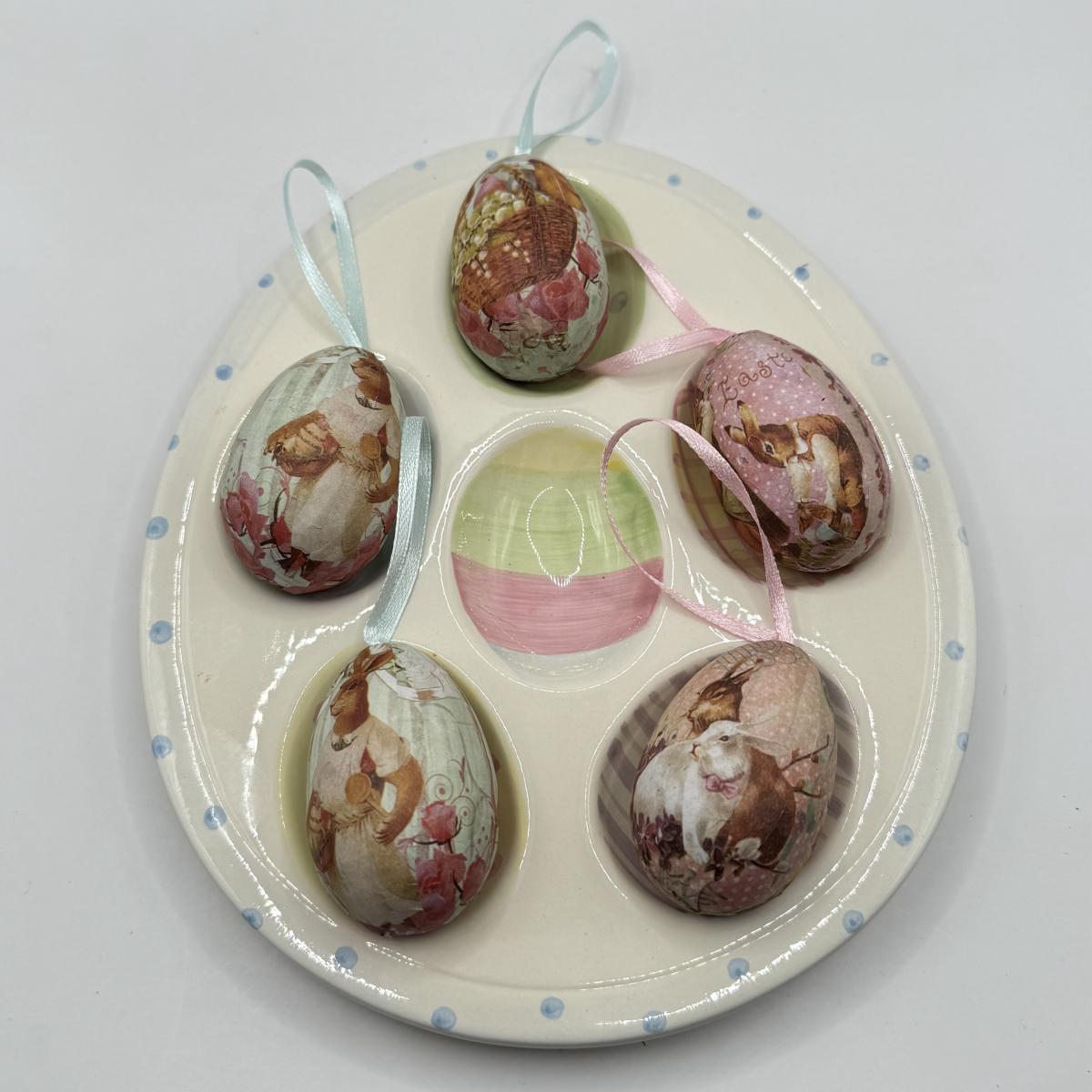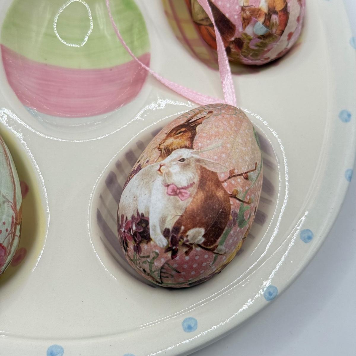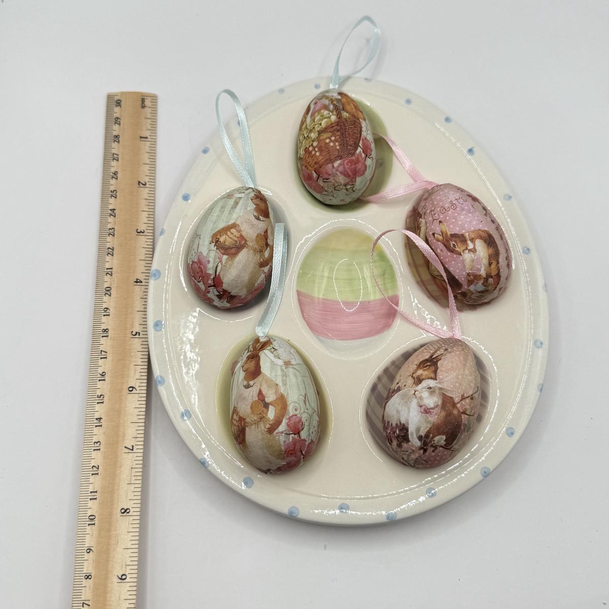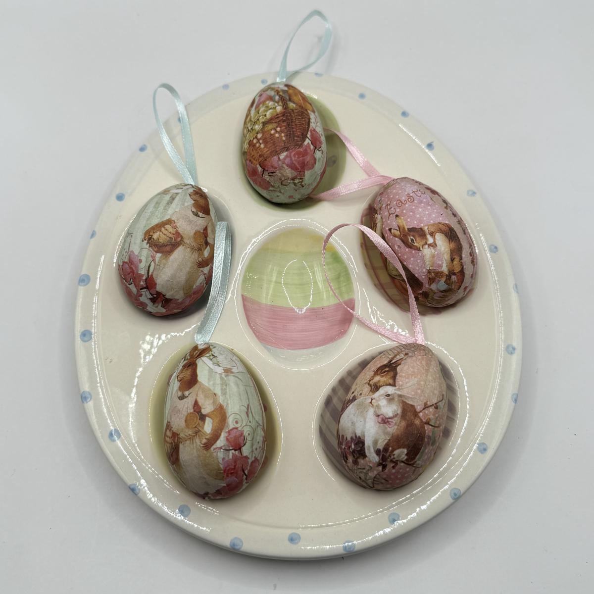 LOT 204K: Colorful Egg Dish w/ Pretty Paper Mache Eggs