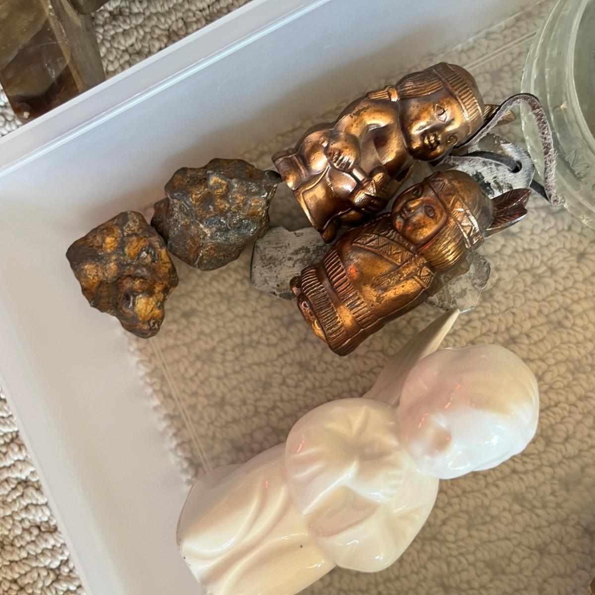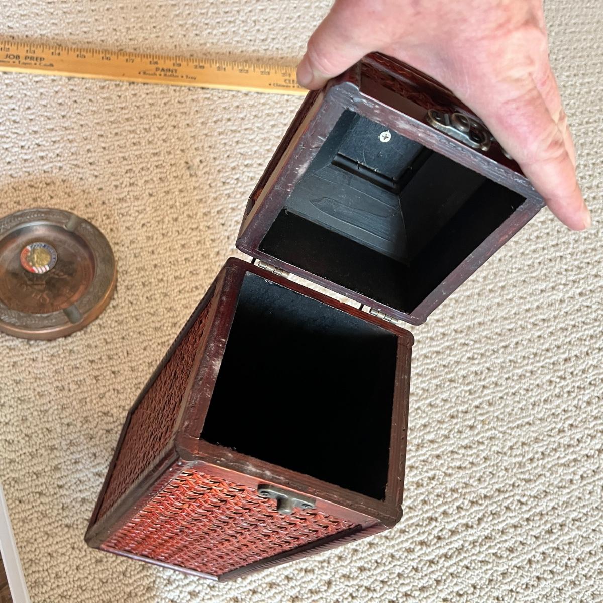 Lot 205 Horsehead bookends, binoculars, wine box, ashtray