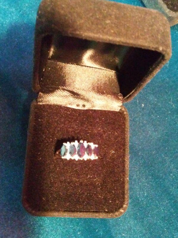 10K RING WITH DARK BLUE STONES