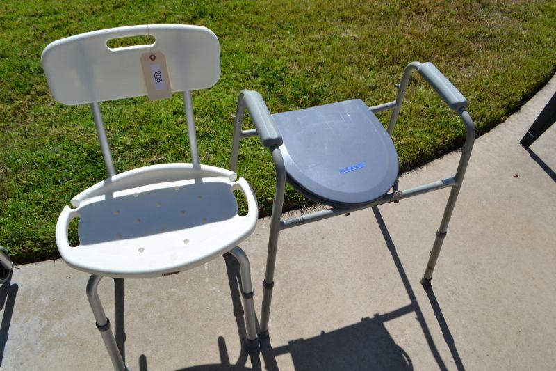 LOT 205 SHOWER CHAIR AND PORTABLE TOILET NO BUCKET