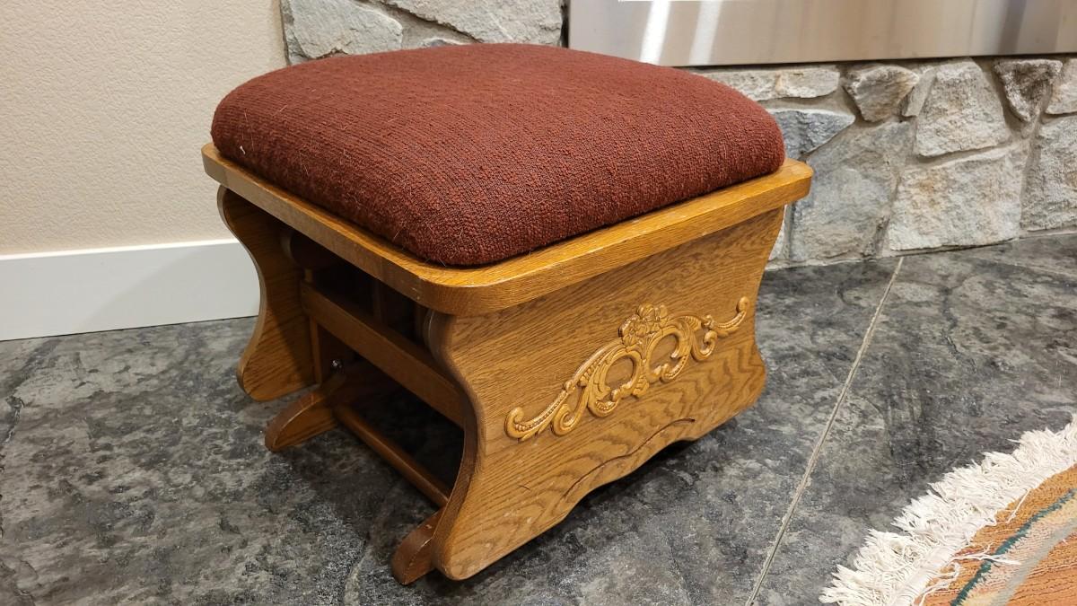 Lot 205: Vintage Rocking Ottoman w/ Carved Accents