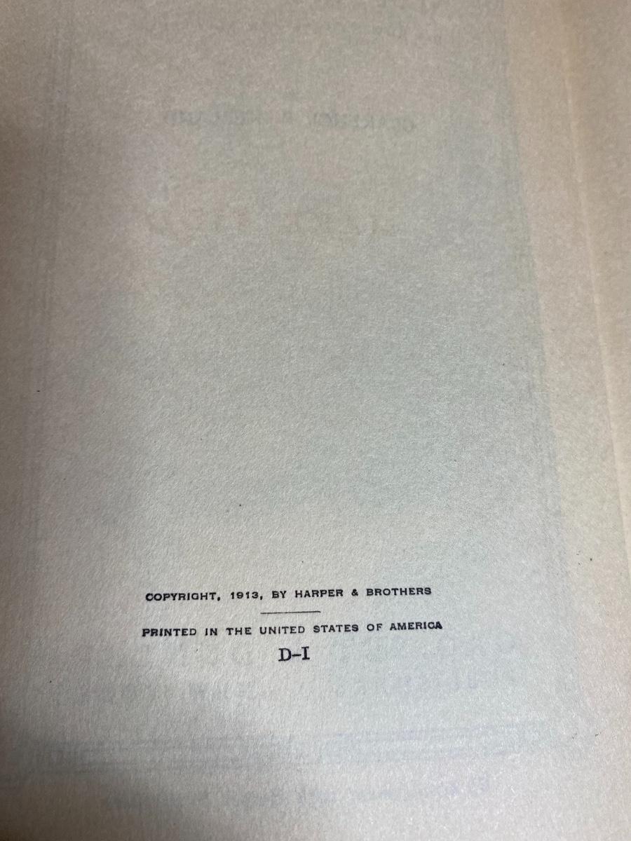 Copyright 1913 By Harper and Brothers. Please see all pictures as they are the best representation of the items. The pictures show condition, measurements if taken, and what is included in the lot. Due to the large amount that we photograph and the time frame, we are not always able to take measurements. All items unless noted, are pre-owned and have been used. If you purchased furniture, you must bring help. We do not allow one person to carry large furniture out on their own. Bring help, tools and a truck for the safety of our client’s homes, and your personal safety. Company policy. Thank you.