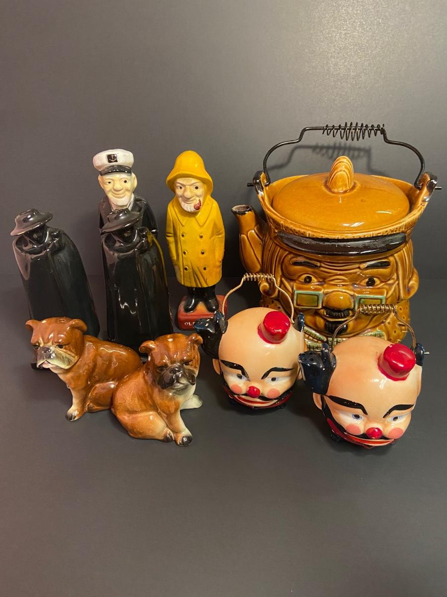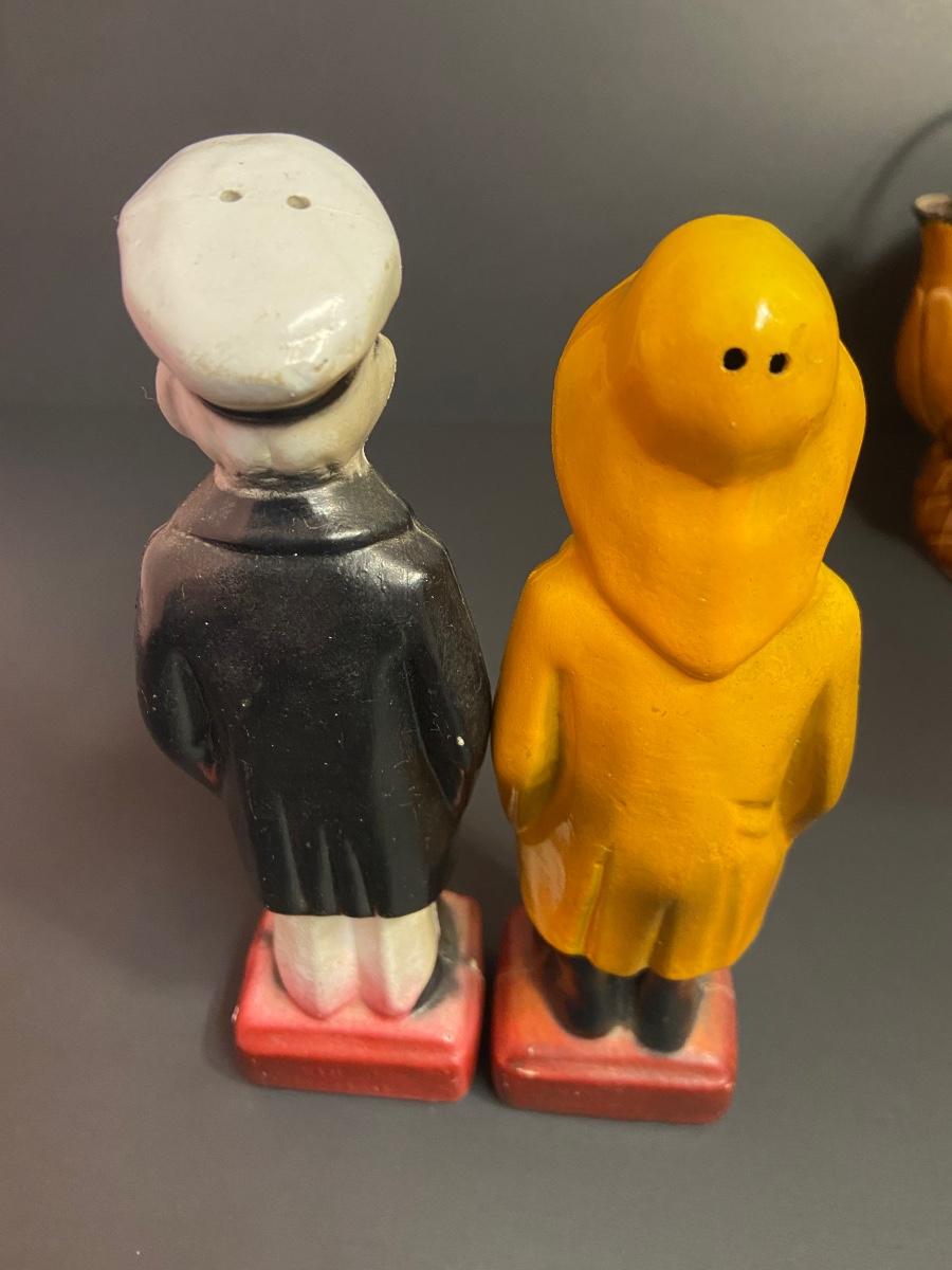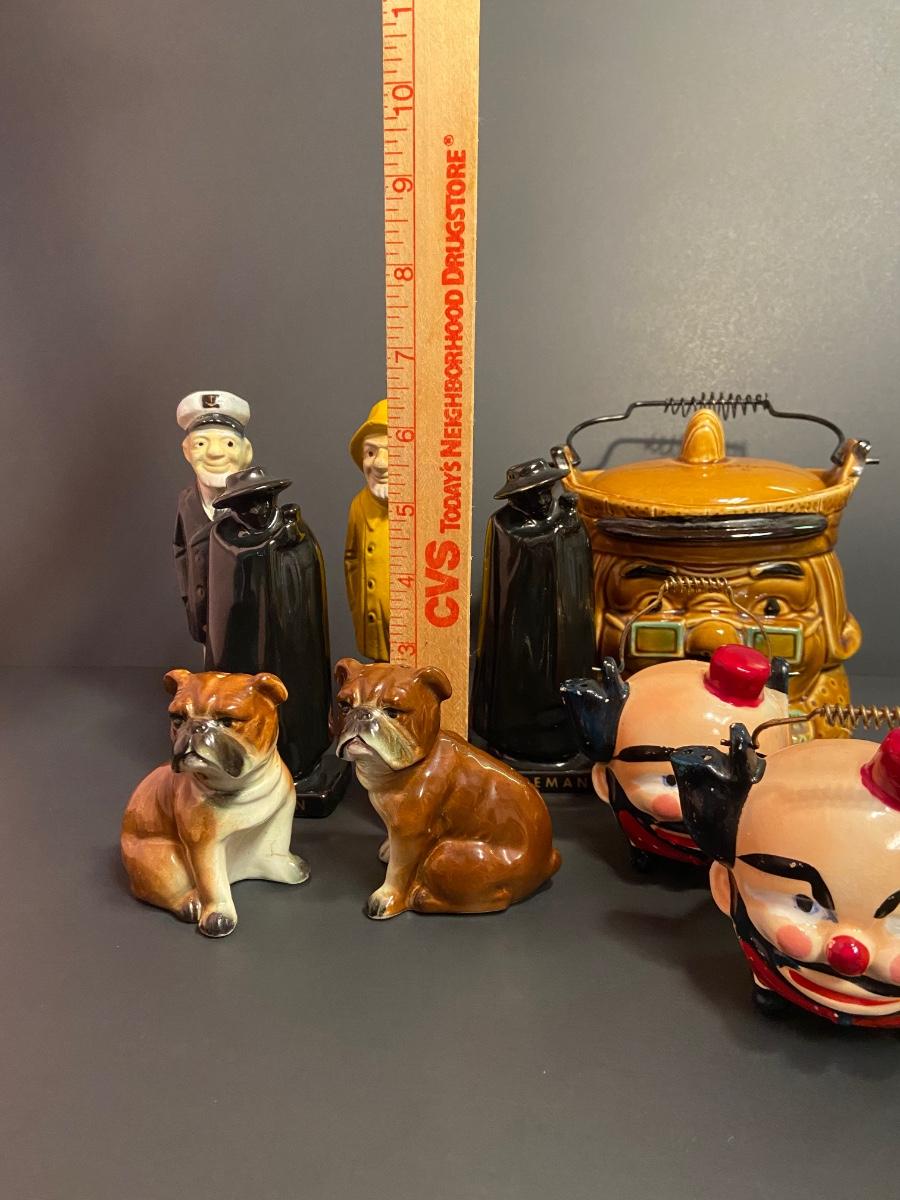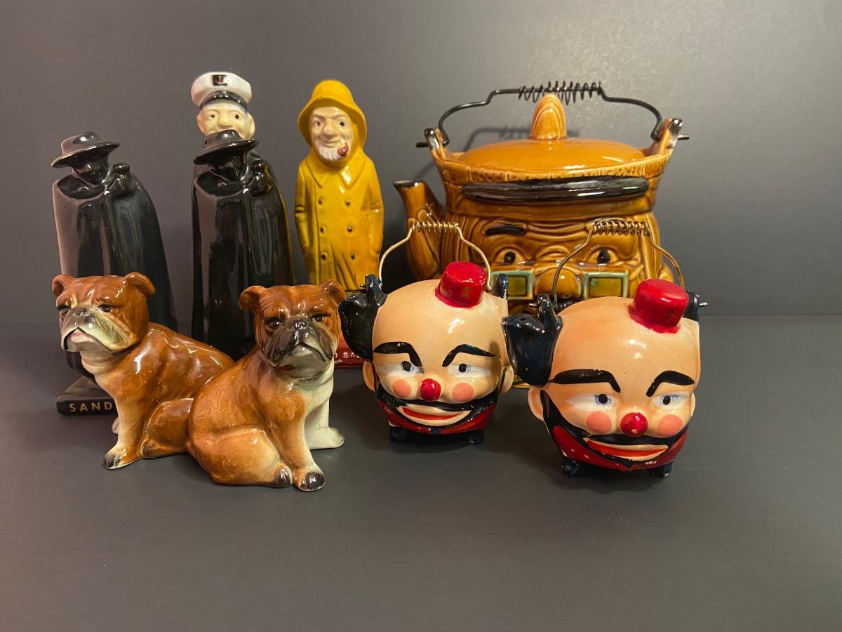Collection of MCM salt and pepper shakers and a vintage Ben Franklin Toby Teapot.