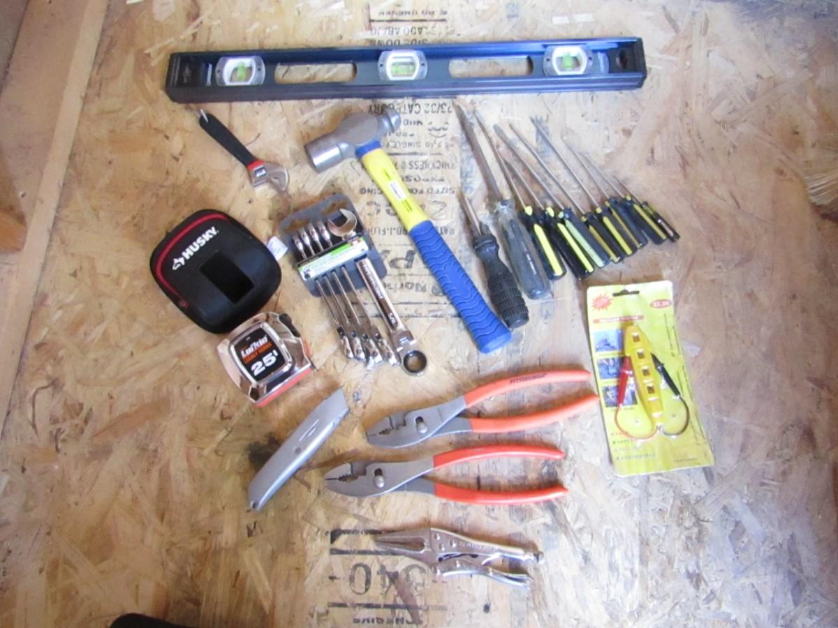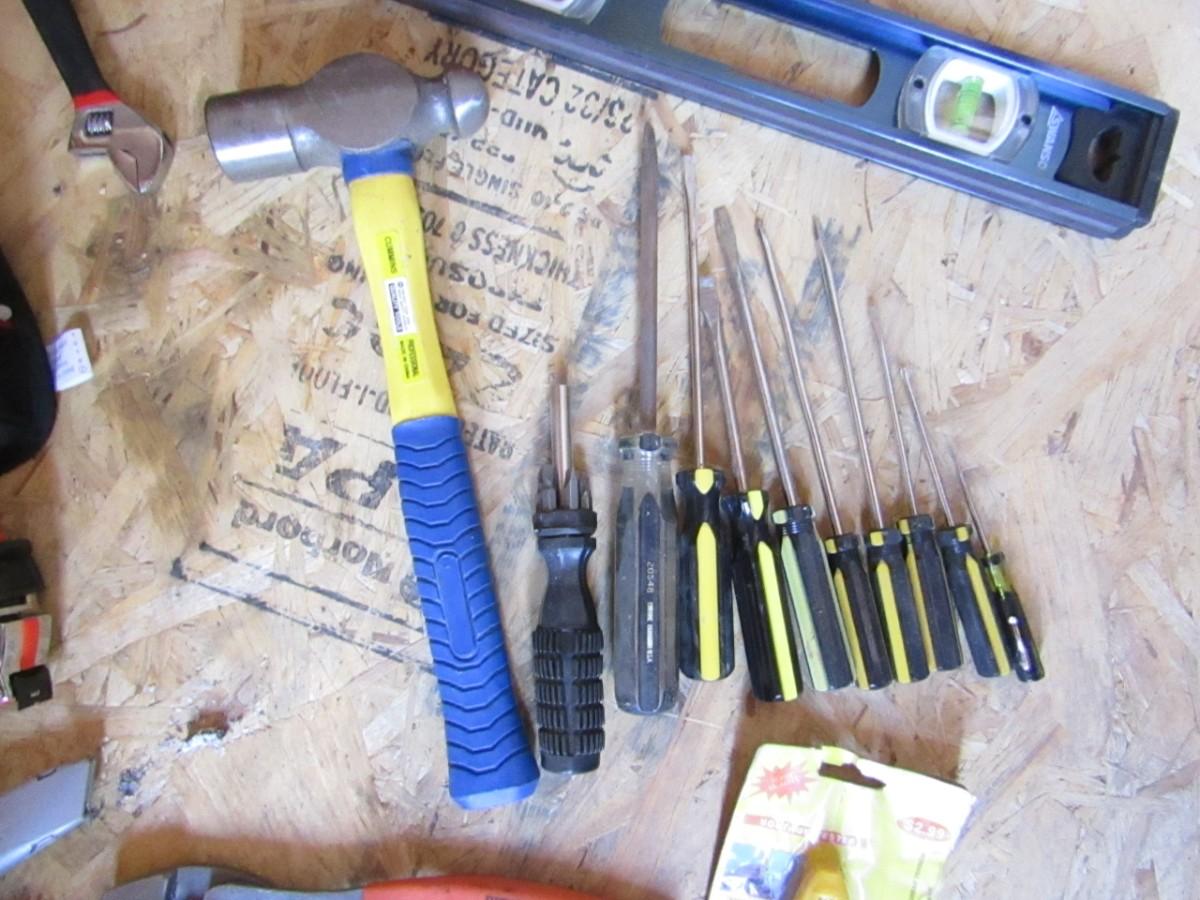WRENCHES, SCREWDRIVERS, VISE GRIP, ALUMINUM LEVEL AND MORE