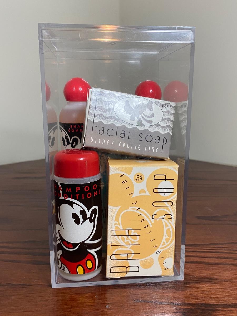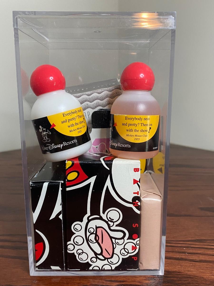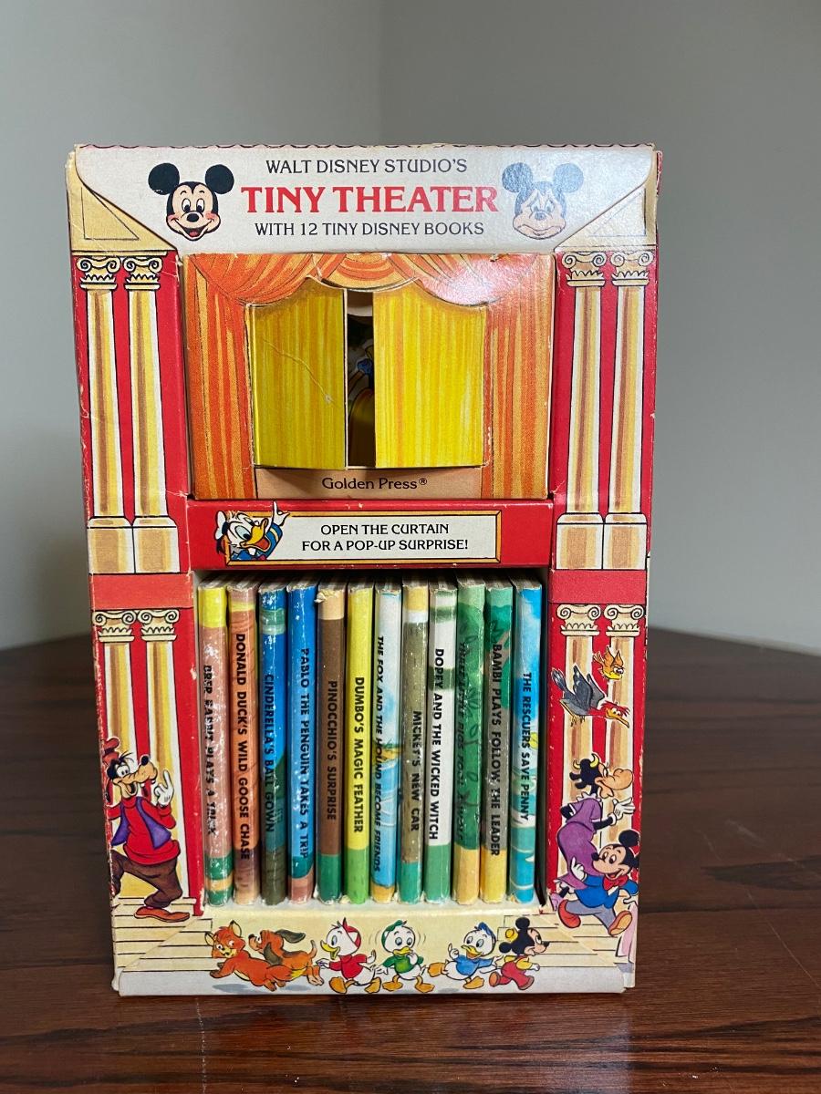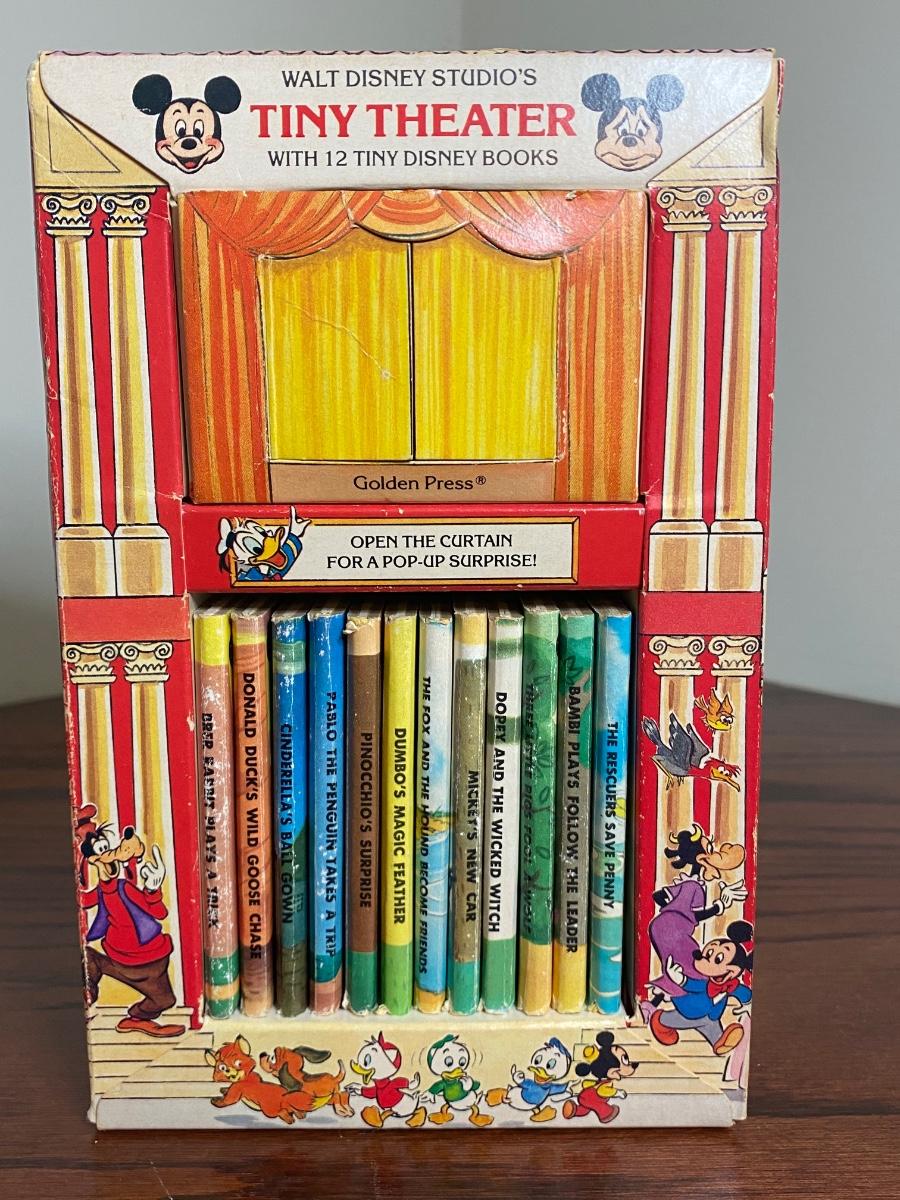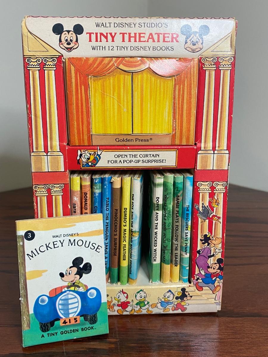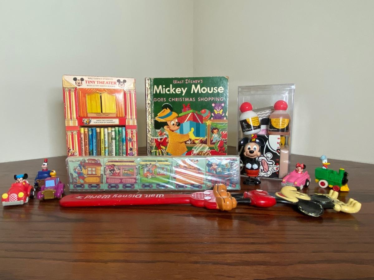Lot 205: Vintage Disney: Tiny Theater w/Tiny Books, Soaps w/Cartons That Make a Train, Little Golden Book, Back Scratcher & More