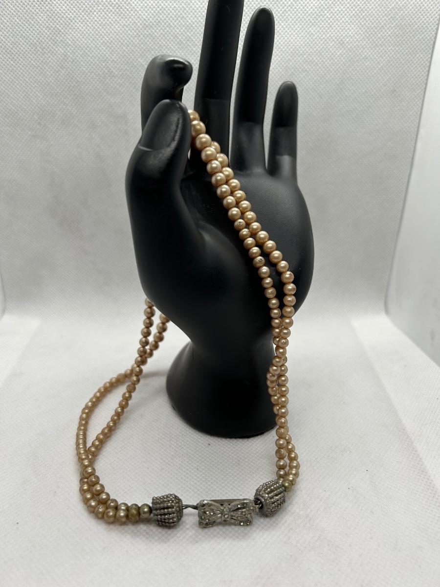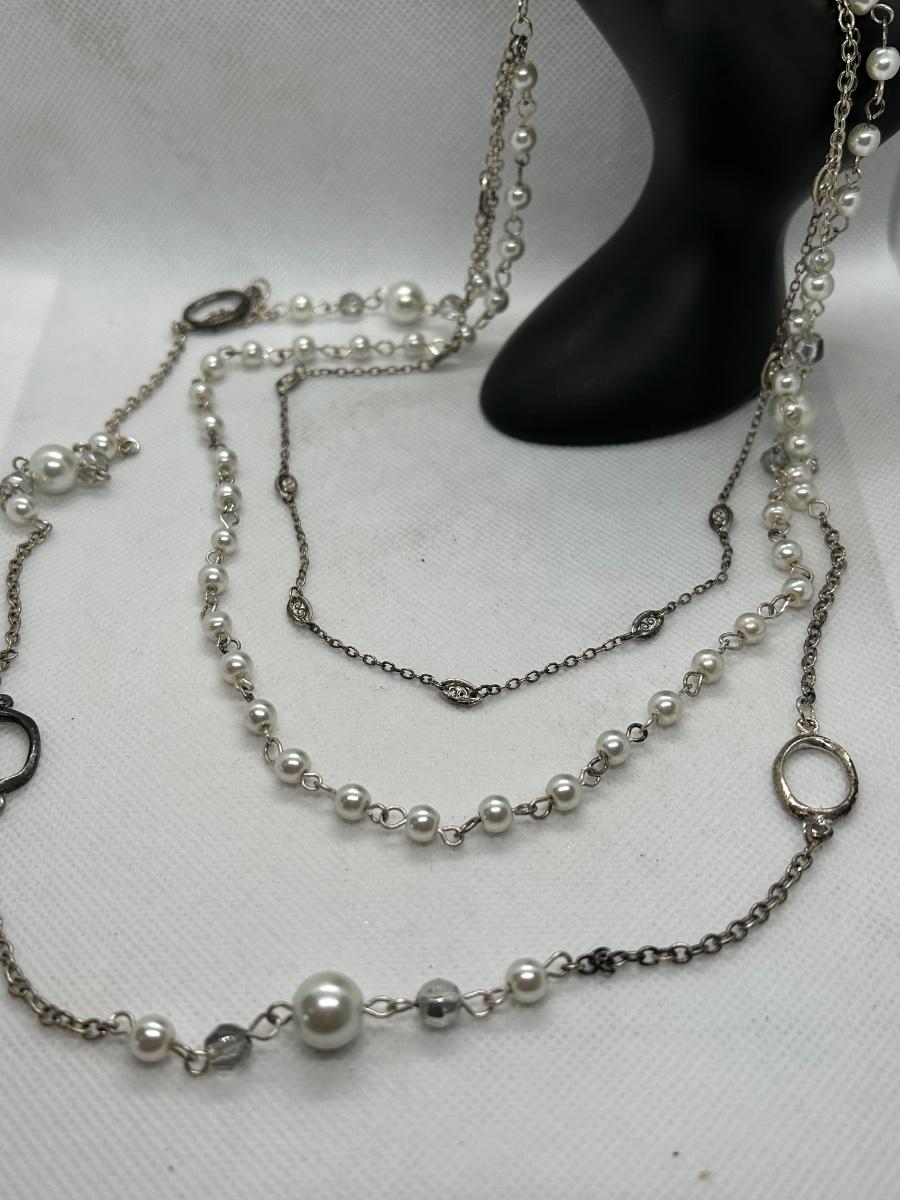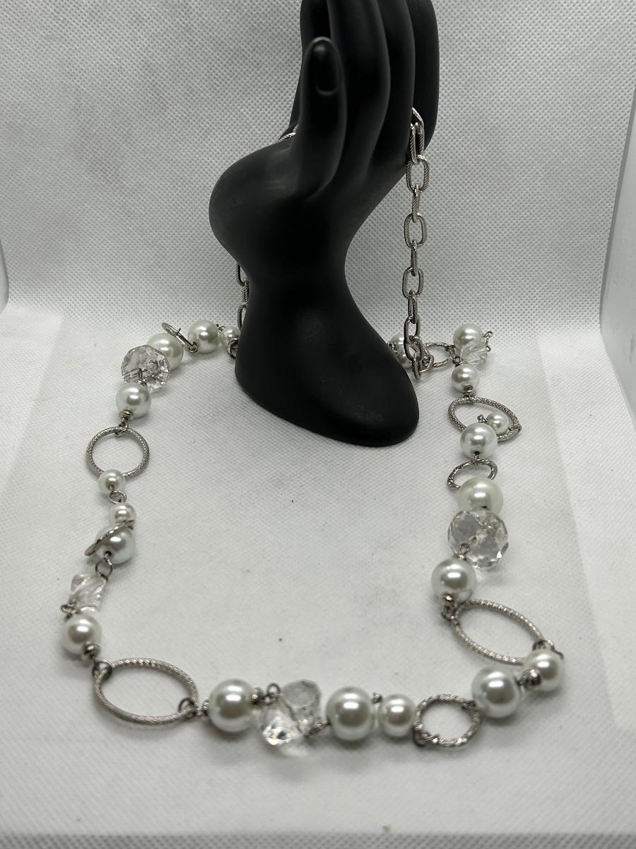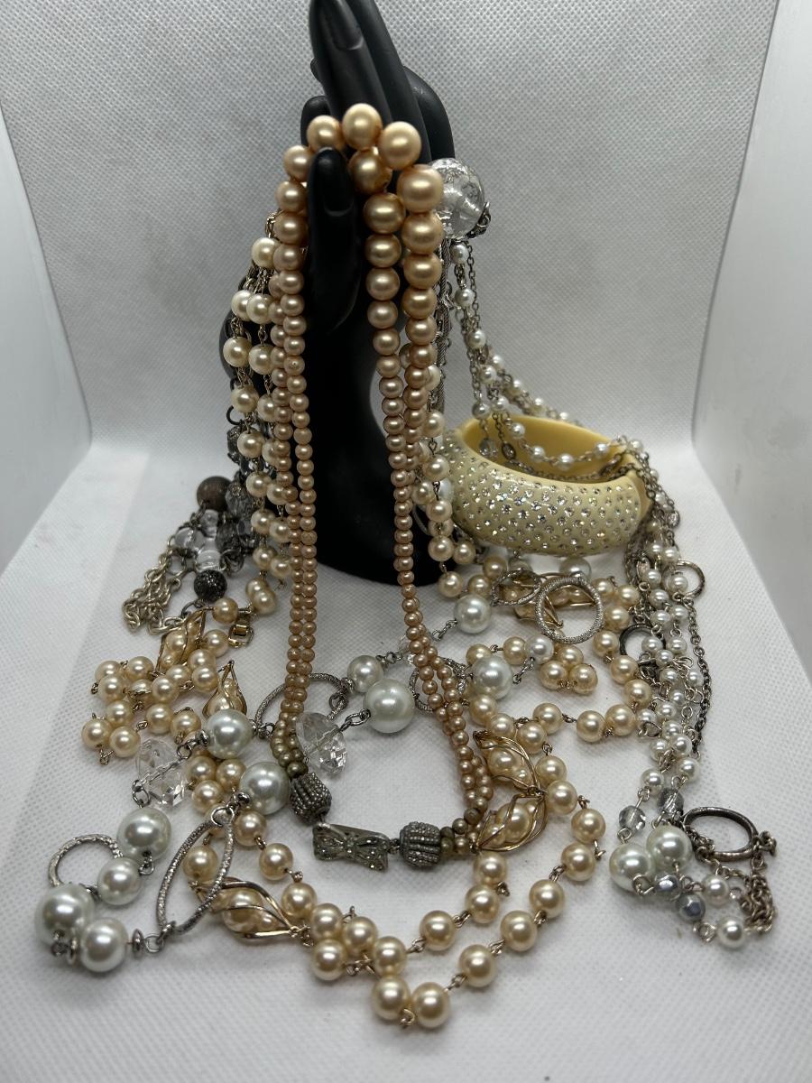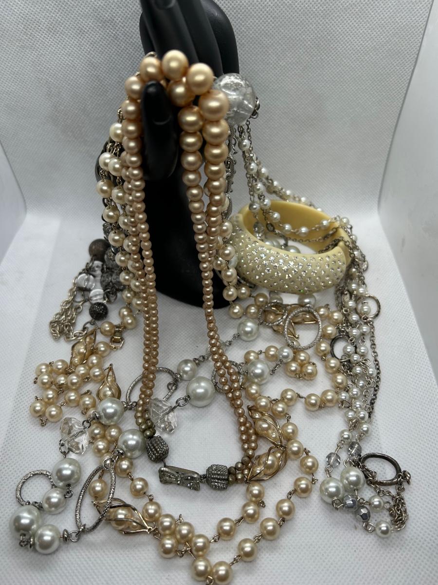 Lot 205: Silvertone Necklaces, Faux Pearls, Large Bangle w/Rhinestones