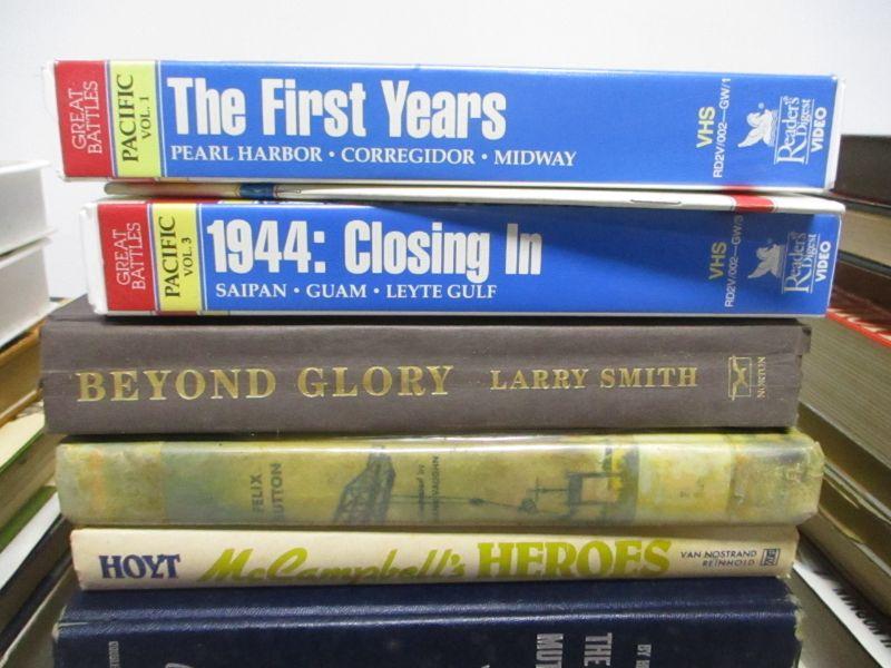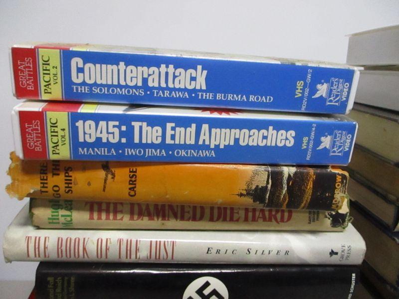 A few VHS tapes - subject of books is mostly history. Books have been stored in garage or attic