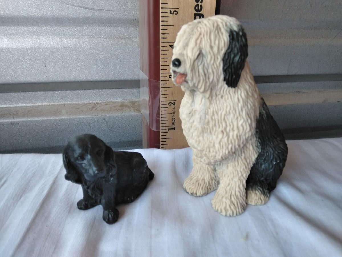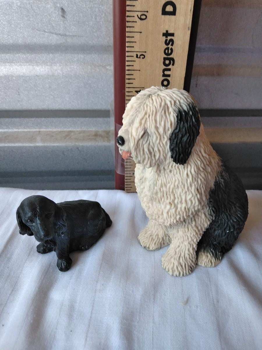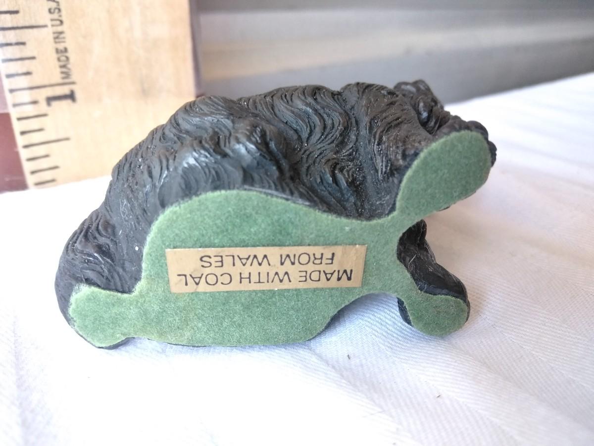 TWO DOG FIGURES. SHETLAND SHEEP DOG SCHMID MARKED BASE. , AND BLACK PUPPY... MADE WITH COAL FROM WALES.