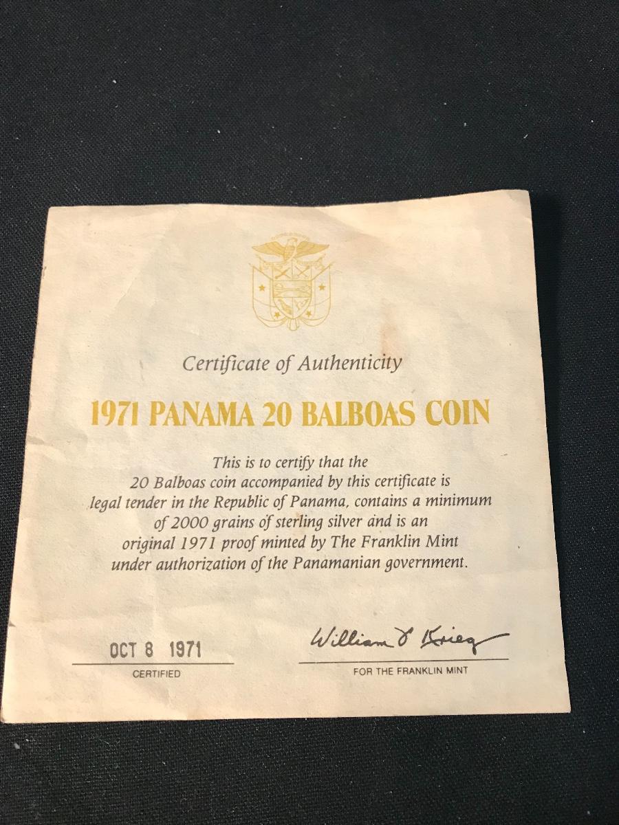 Lot 205: Franklin Mint Sterling Silver 1971 Panama 20 Balboas Coin