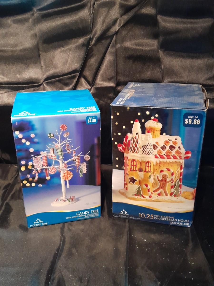GINGERBREAD HOUSE COOKIE JAR AND SWEET DREAMS CANDY TREE