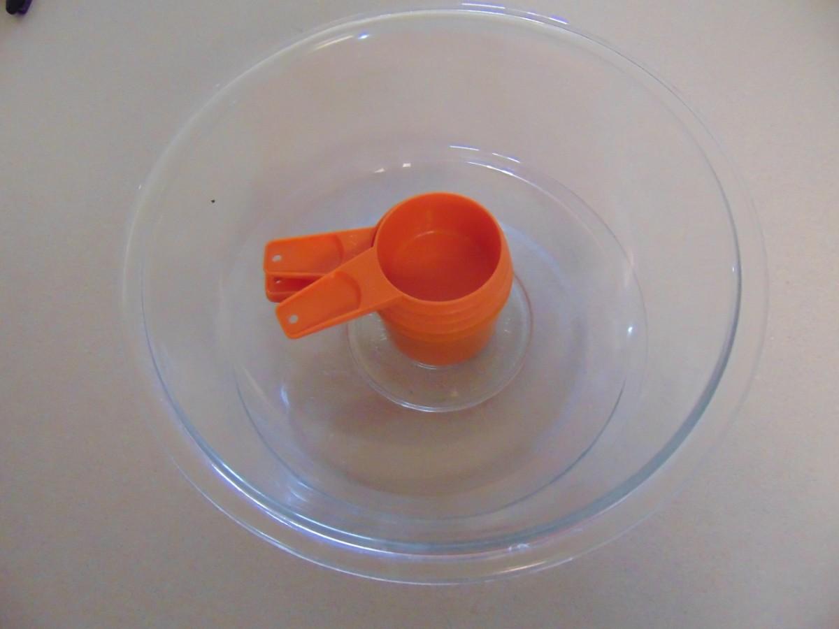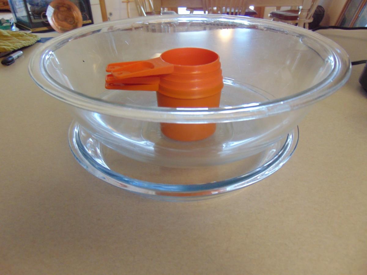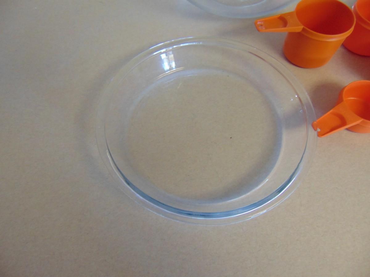 GLASS MIXING BOWL, PIE PLATE AND MEASURING CUPS