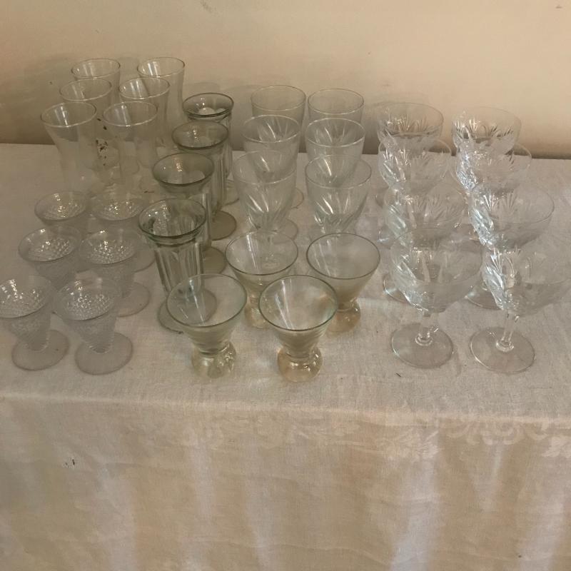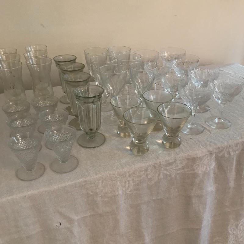Lot includes 34 pieces of glassware for drinks of many kinds. See pics. No shipping available. Local pickup only in Asheville, NC.