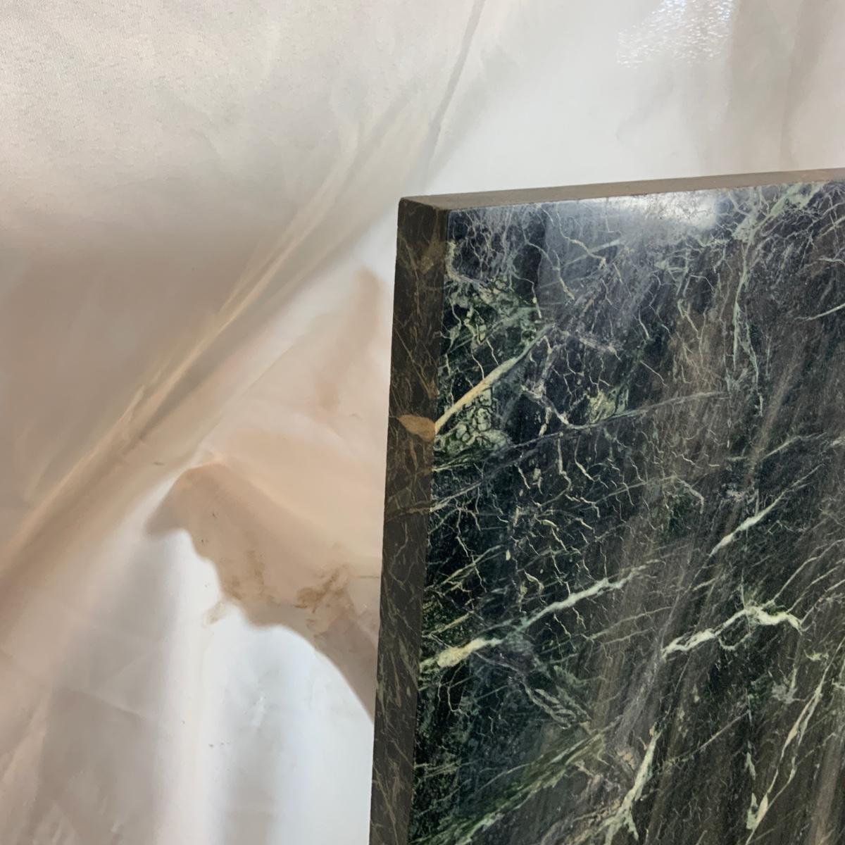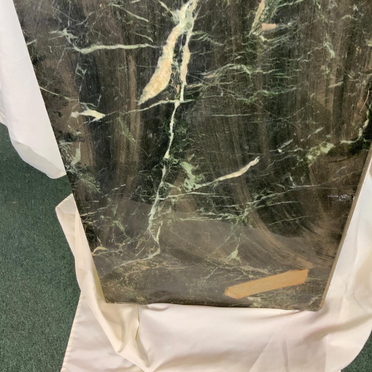 Green Marble Slab. Great detail and veining. Massively heavy piece. Lift with your knees. //::\\ Please see photos for details and condition. No attempt has been made to hide any imperfections. All items listed in this auction are warehouse items, and need to be cleaned. A majority of the items need restoration as well. All items are sold AS IS and WITHOUT GUARANTEE. If you are uncertain about an item, DO NOT BID. Due to the nature of this online auction in-person inspection is HIGHLY recommended. All Sales are FINAL. Pick Up Times are FIRM. Please confirm with your own schedule that you can pick up in the scheduled times listed in the Terms and Conditions. Any questions please message the auctioneer. DO NOT Contact The Harp Gallery.