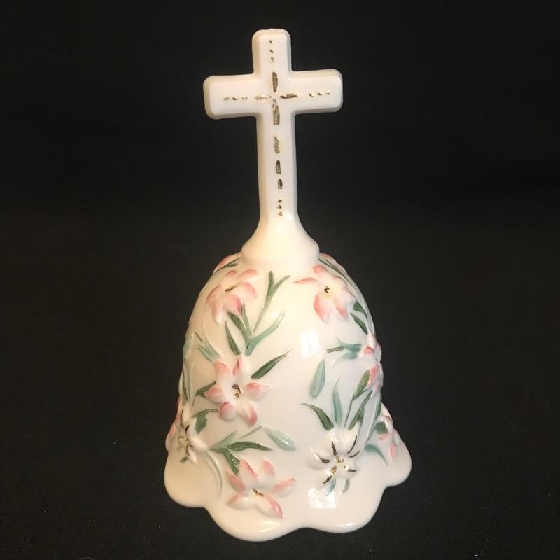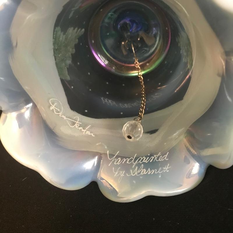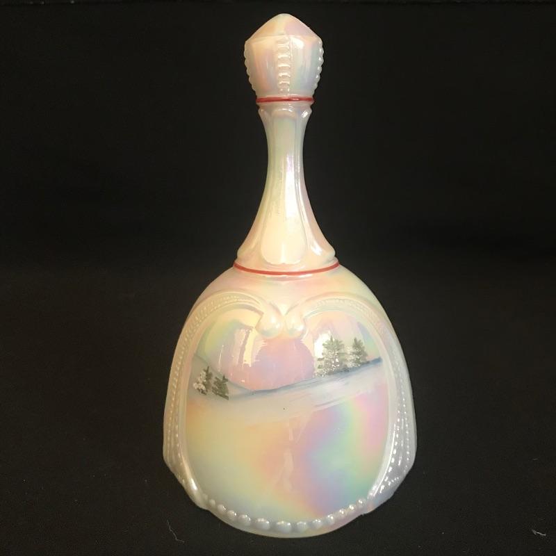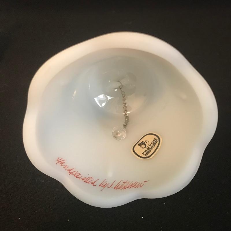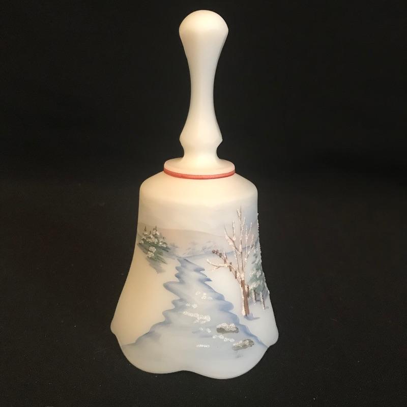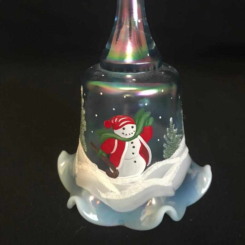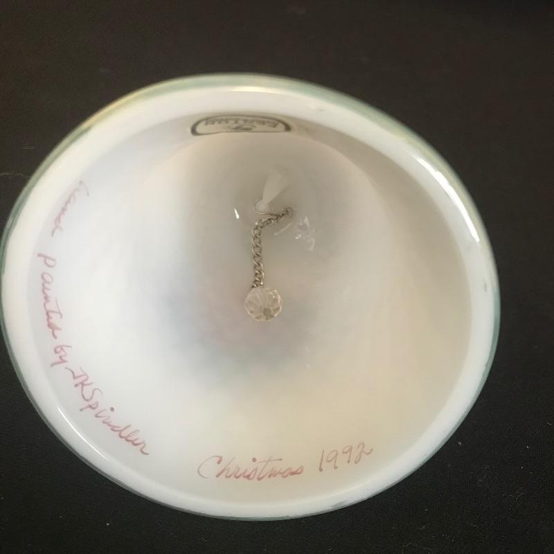 Lovely hand painted and signed Fenton bell collection the first year of this century and a few from the end of the last century. The 1992 bell is milk glass with fire luster. The 1996 bell is an iridized Ruby Whitton bell with a Bill Fenton signature. The 1999 bell is described as Iridized Misty Blue Opalescent Satin bell with Don Fenton Signature. Christmas 2000 is an Iridized opal oval bell. All bells are similar in size, the Christmas 2000 bell stands 7” high. See photos. Shipping available.