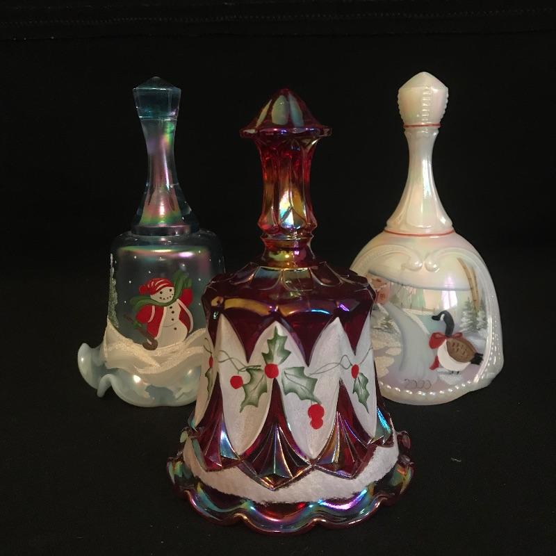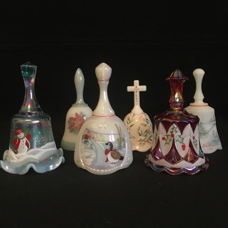 Lot 205 - Six Hand Painted Fenton Christmas Bells