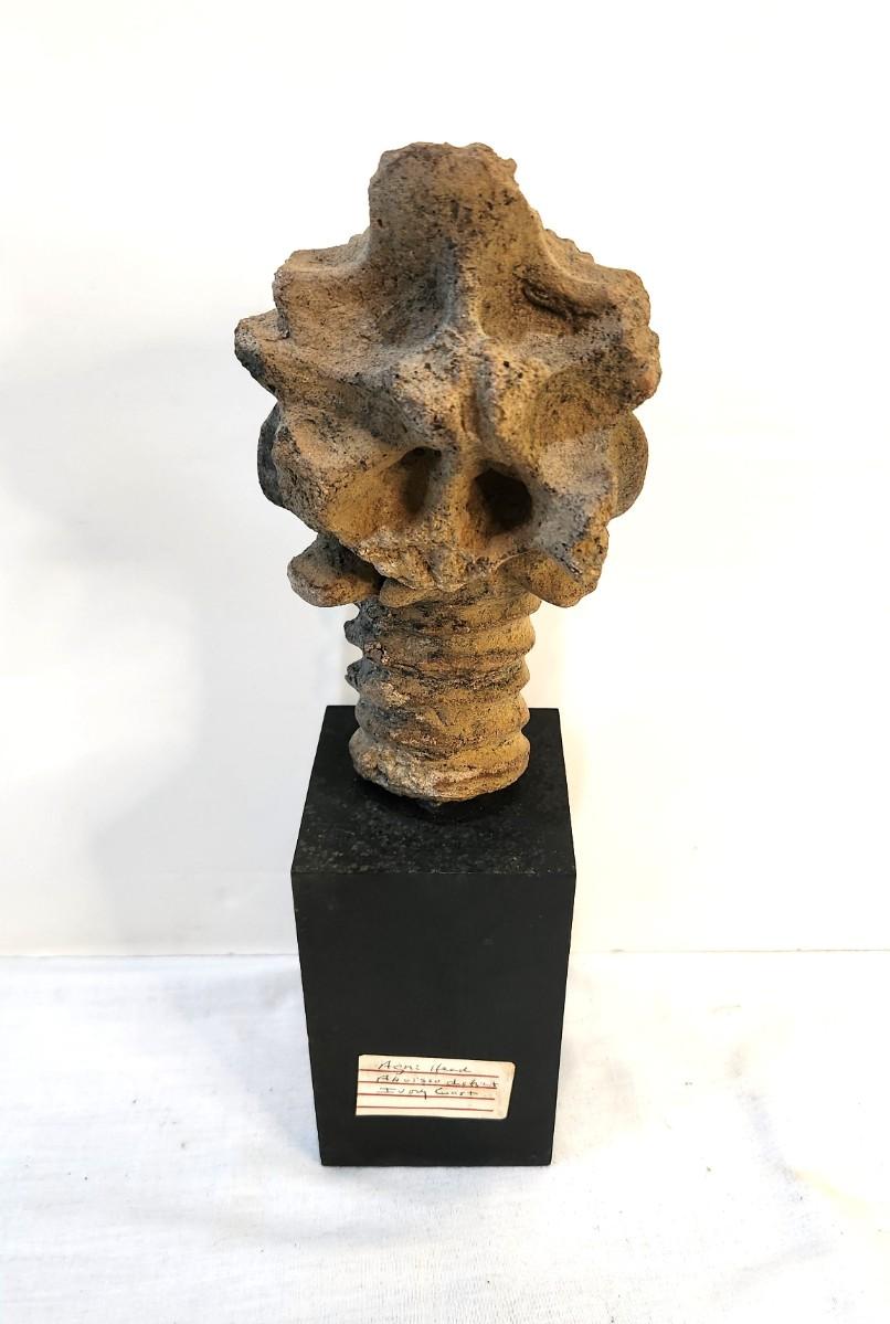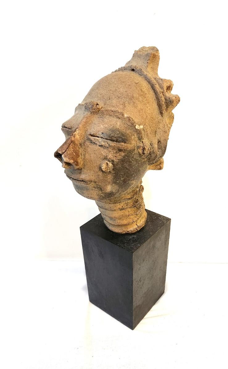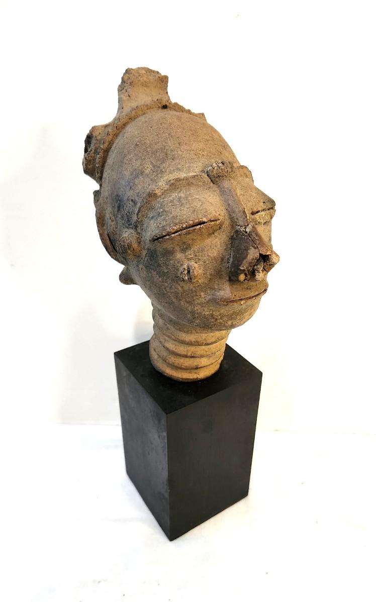 Agni male terracotta funerary head - top part of a reliquary figure. Valued at 250.00 in the 1970's. Acquired in March of 1972. Client's inventory values now at 600.00. This was a scarce piece he was very proud of - came from the Dr. Victor Dubois estate, 14" tall.