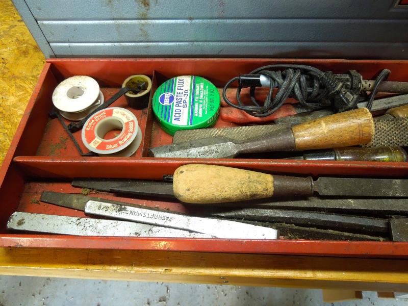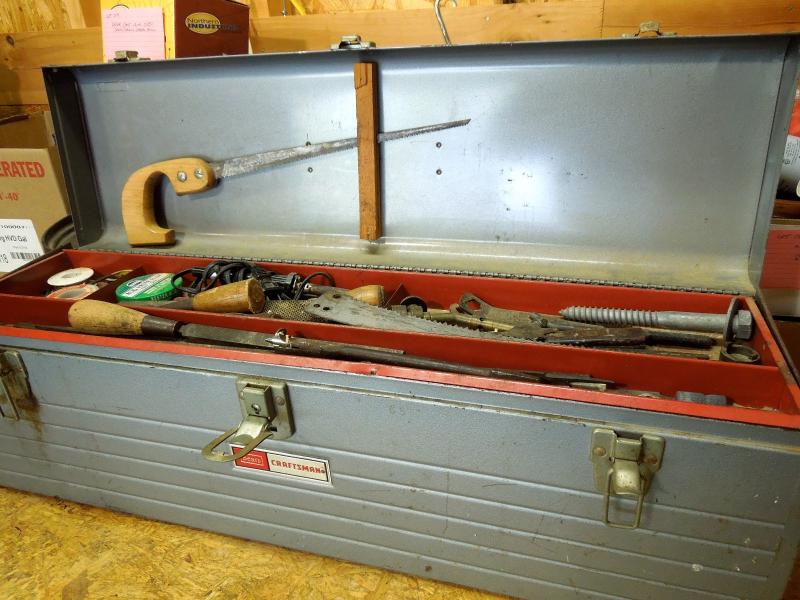 Lot 205: Large Vintage Metal Craftsman Tool Box Full of Vintage Tools