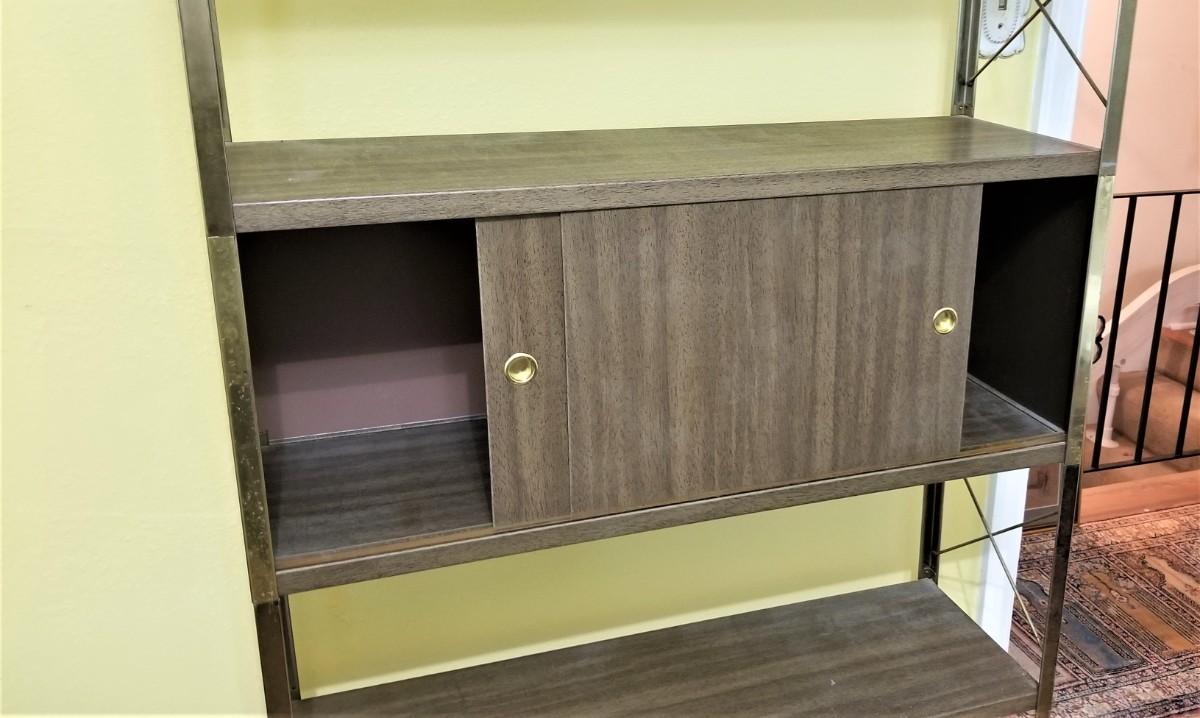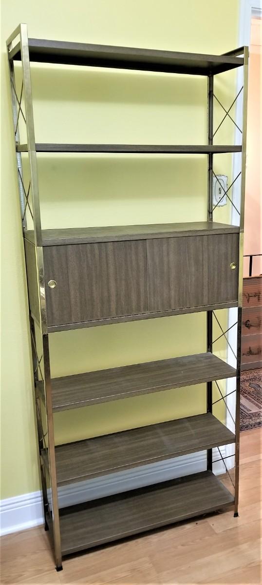 Mid Century Metal bookcase - one shelf with sliding doors. A mid century design classic. Gently used. 30" across, 70.5" tall, 6 shelves.