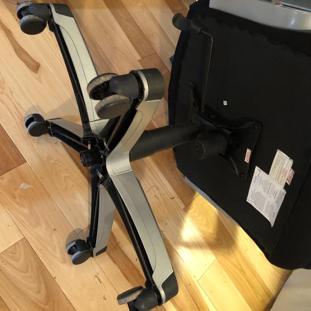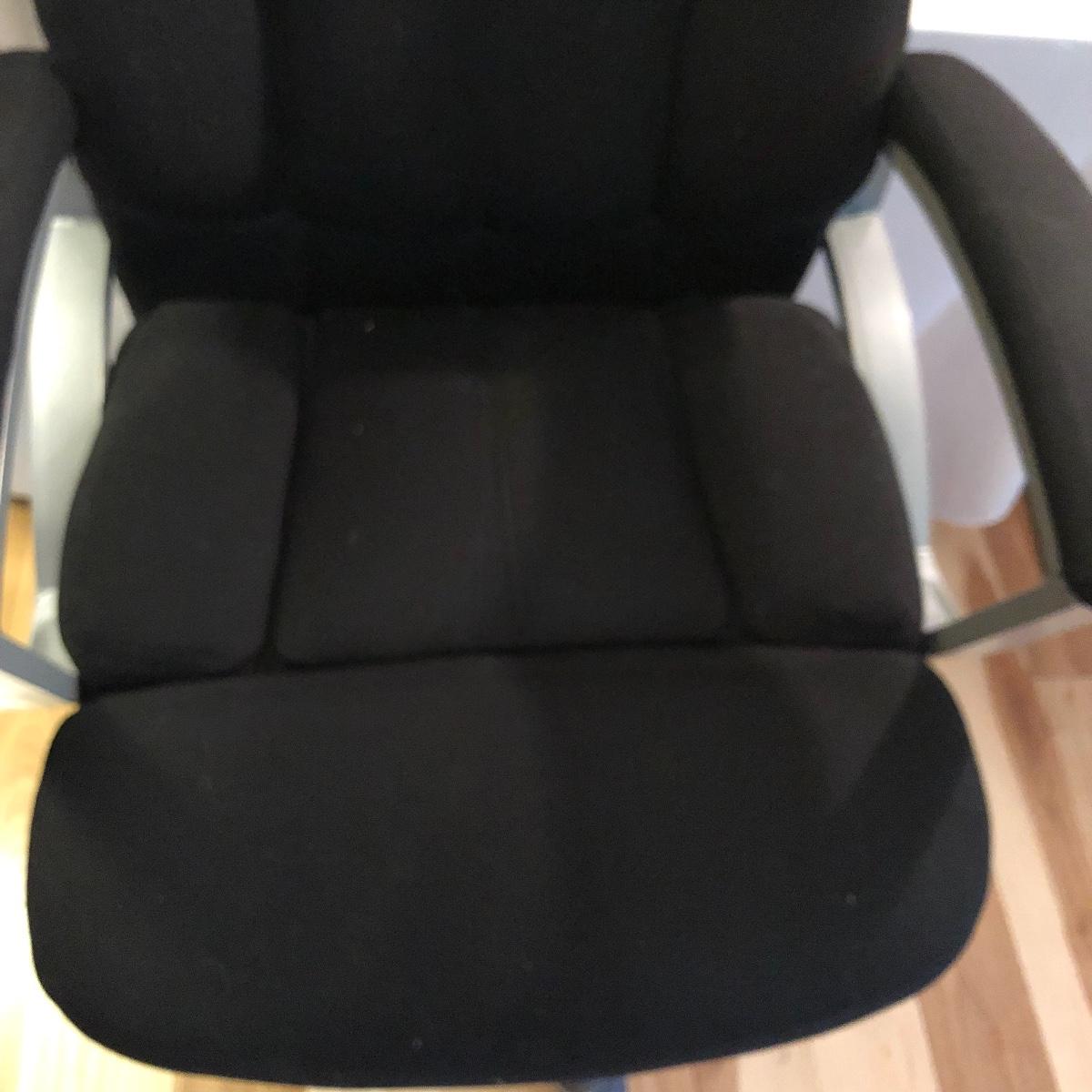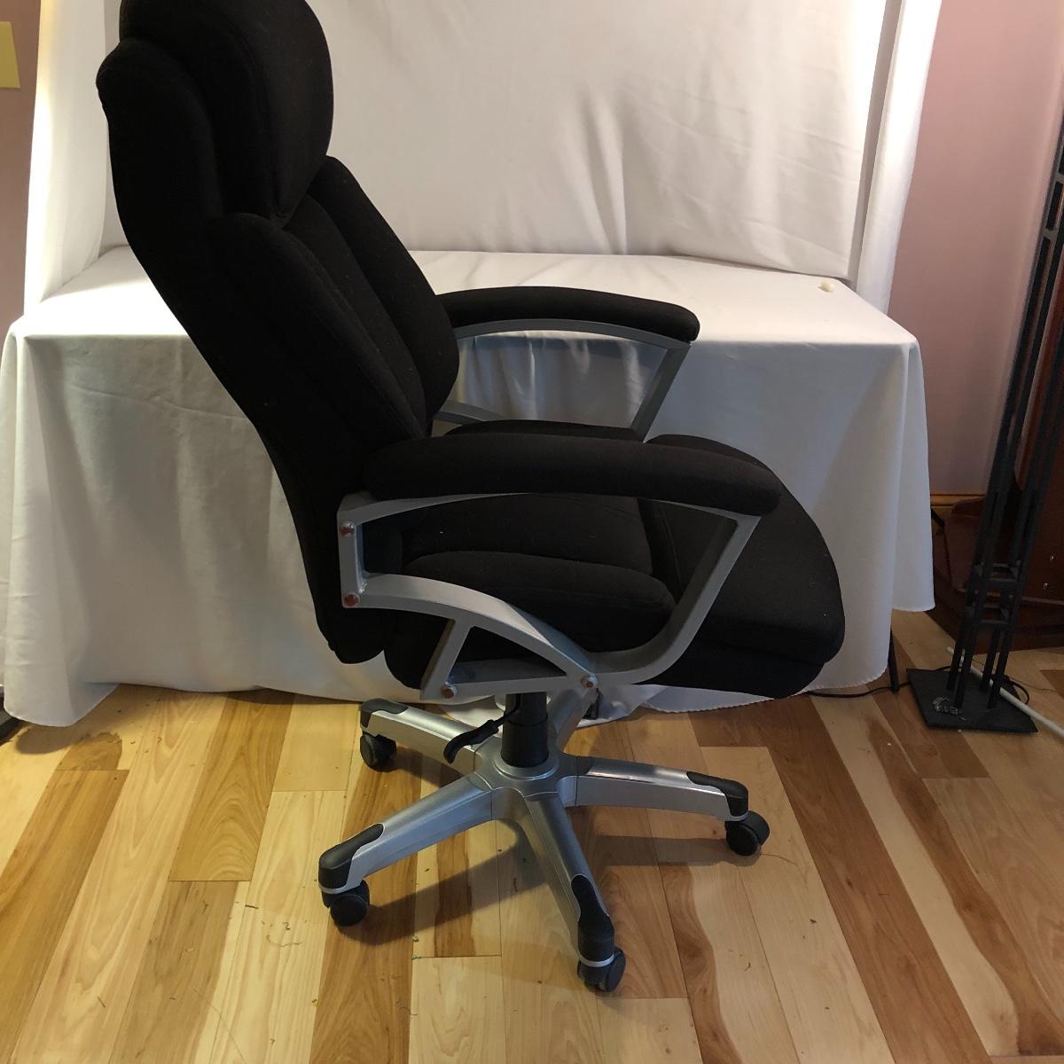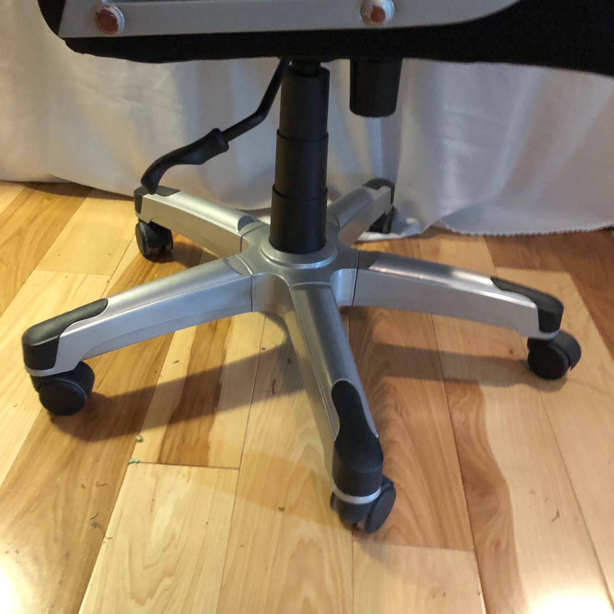 Stay comfortable while you work with this pair of seats. Lot includes large fabric office chair on wheels with adjustable height and a fabric stool on wheels with adjustable height. Office chair measures 30” x 31” x 49” at maximum height.