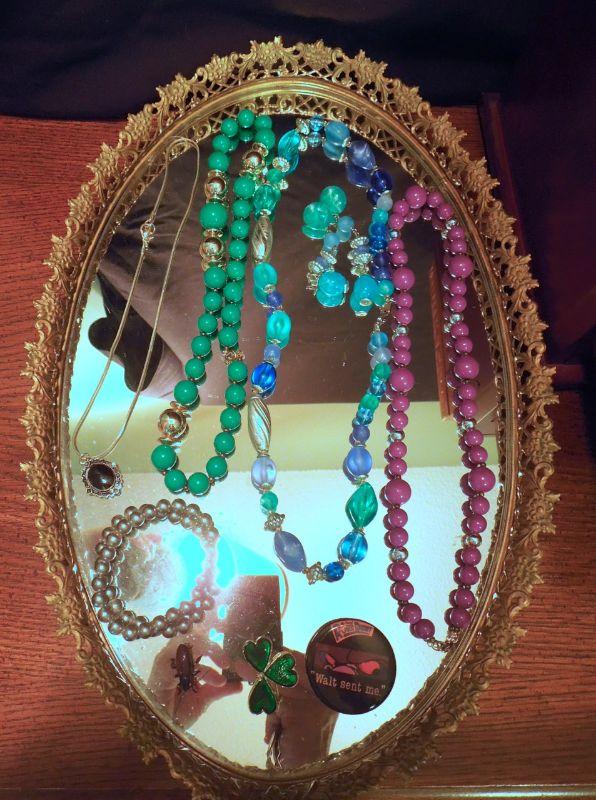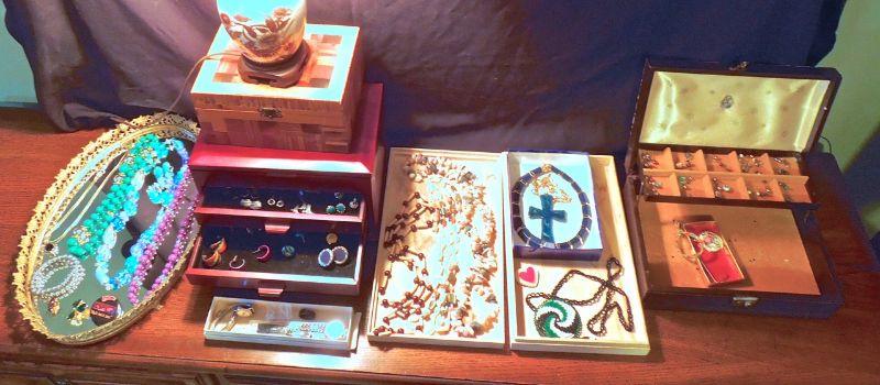 Lot 205: Three Jewelry Boxes, Mirror Tray, Lamp and Vintage Jewelery