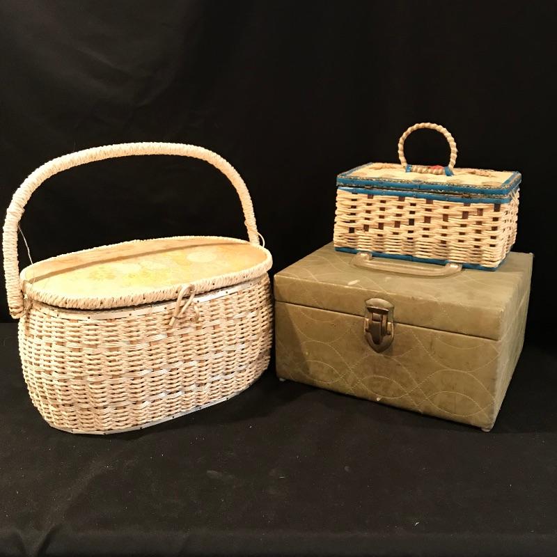 Lot 205 - Three Vintage Sewing Baskets with Notions