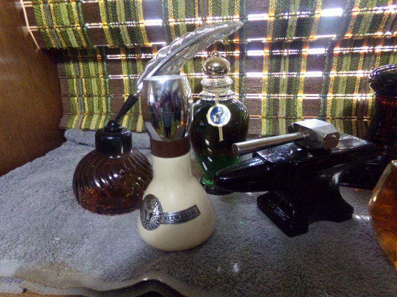 LOT 197 ANVIL, INKWELL W/PEN & MORE AVON COLLECTABLE BOTTLES