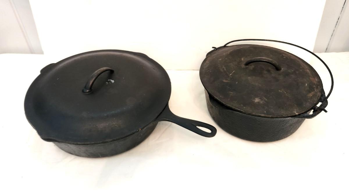 Lot #205  Vintage Cast Iron Skillet & Dutch Oven