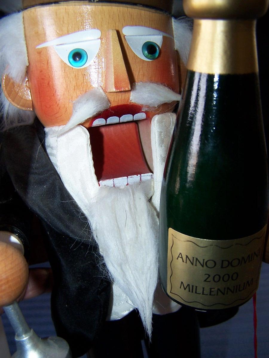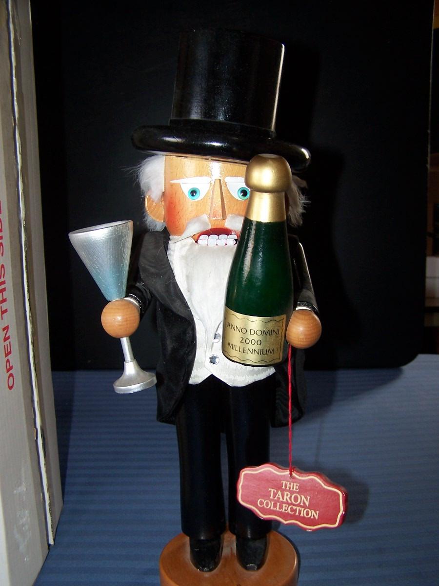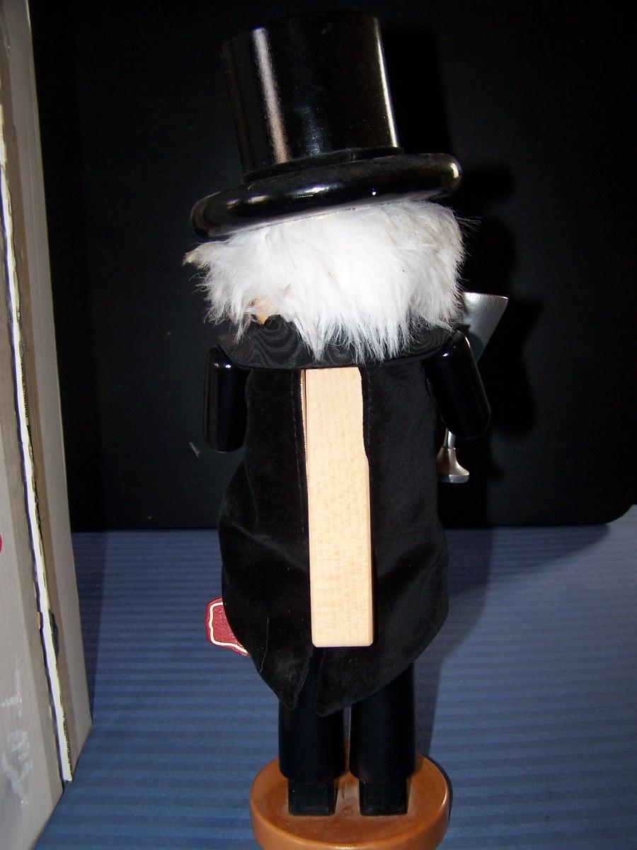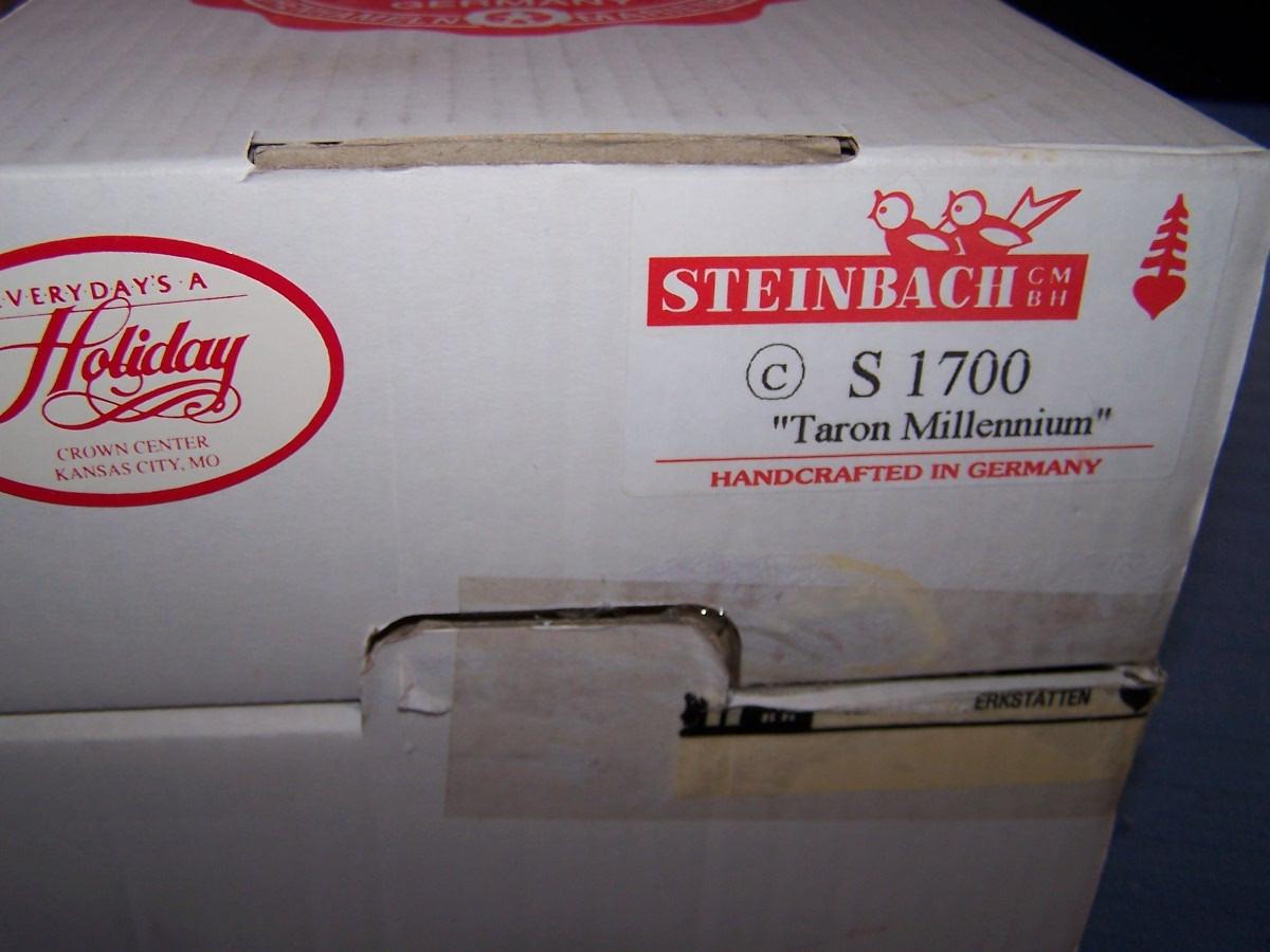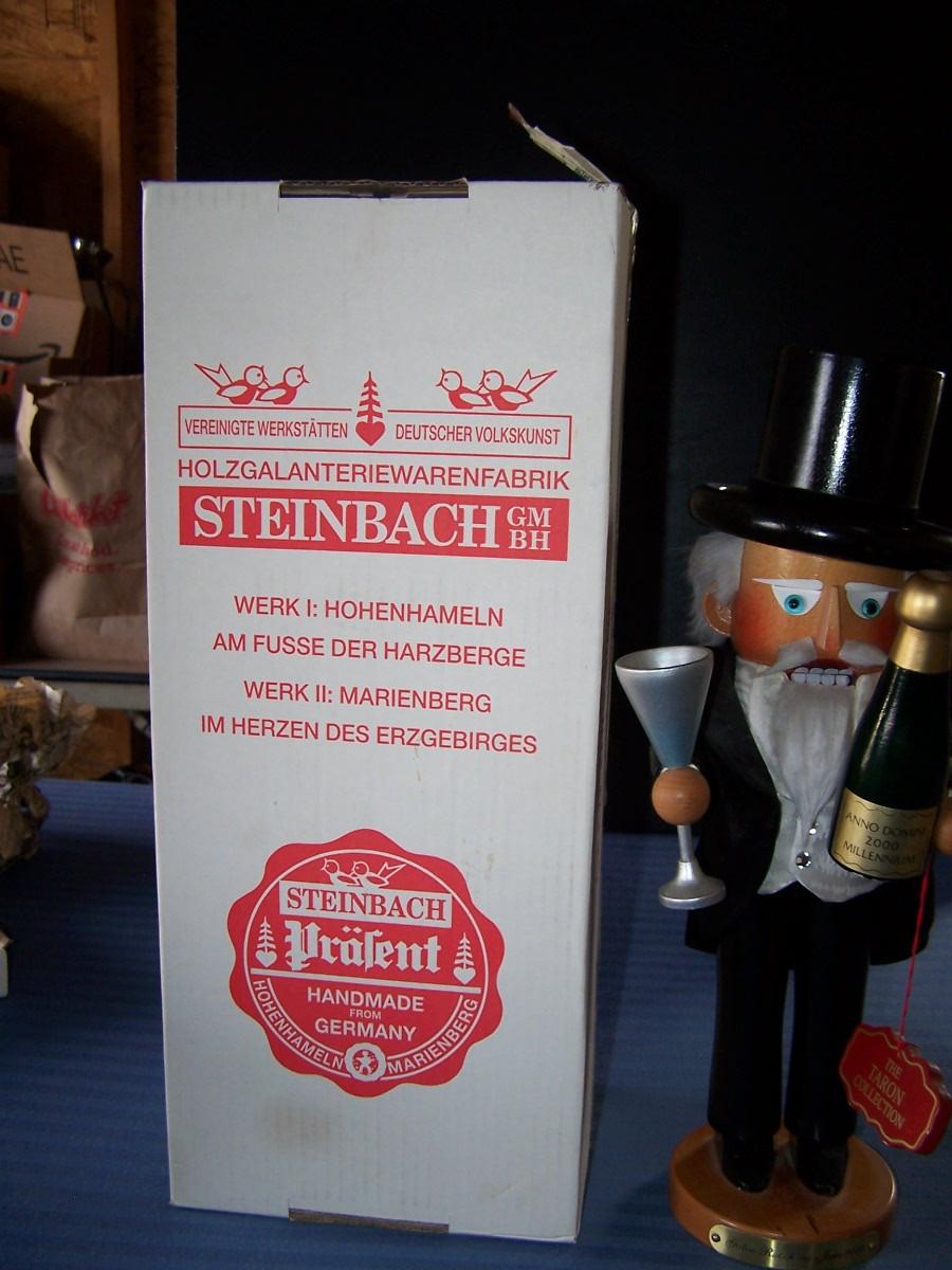 THIS IS A WONDERFUL COLLECTIBLE STEINBACH LARGE WOODEN NUTCRACKER!!! THE HANDS ARE REMOVABLE... HE IS 17'' TALL...THERE ARE SEVERAL TINY NICKS ON THE BOTTLE BOTTOM, HE'S DUSTY, OTHERWISE, LIGHT WEAR....