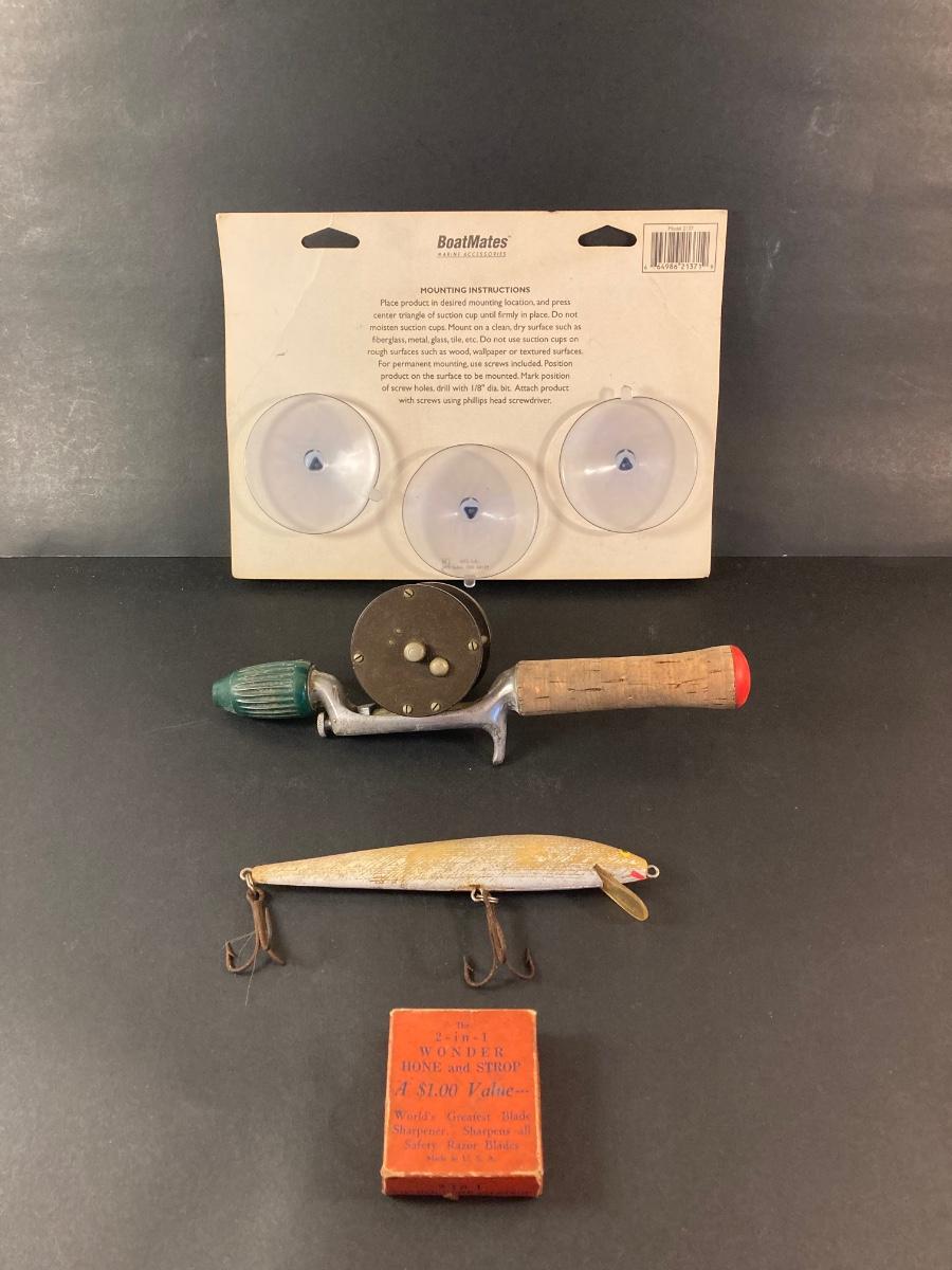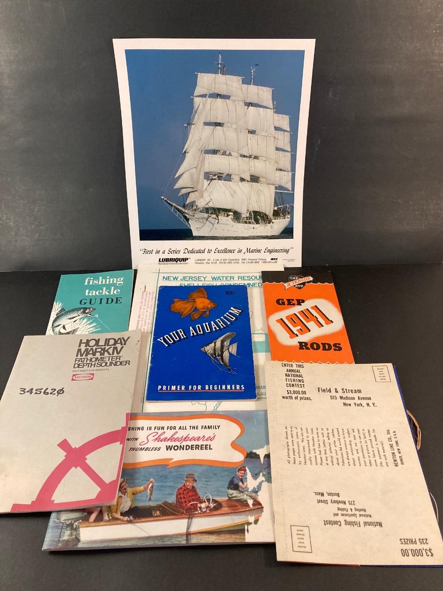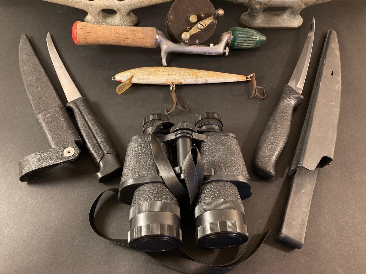 LOT 205J: Nautical Collection - Reel, Helm Organizer, Sportfisher Knife, Books, Catalogs and More