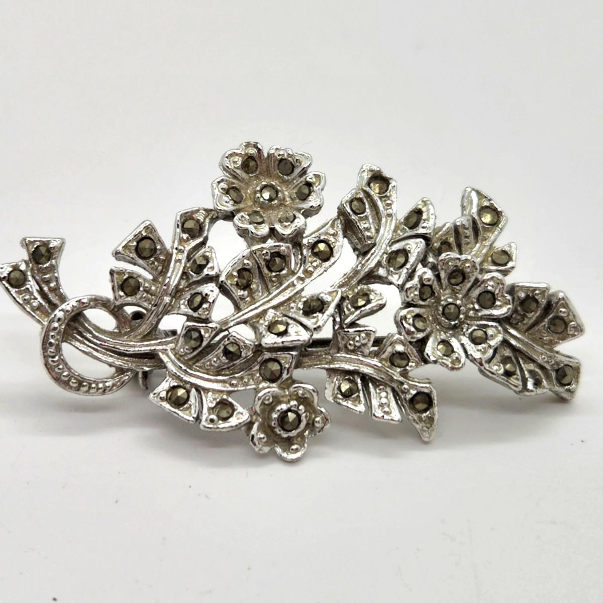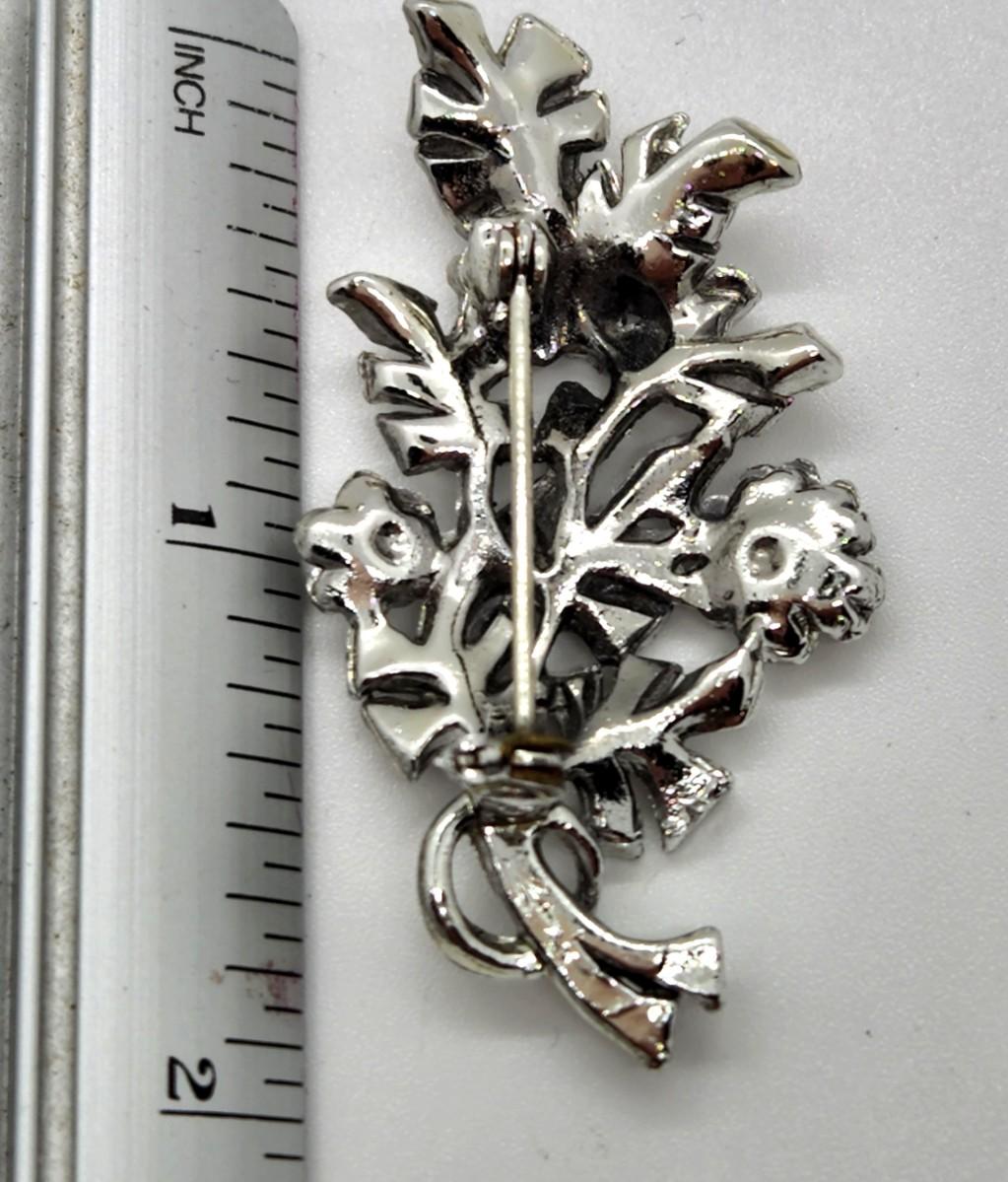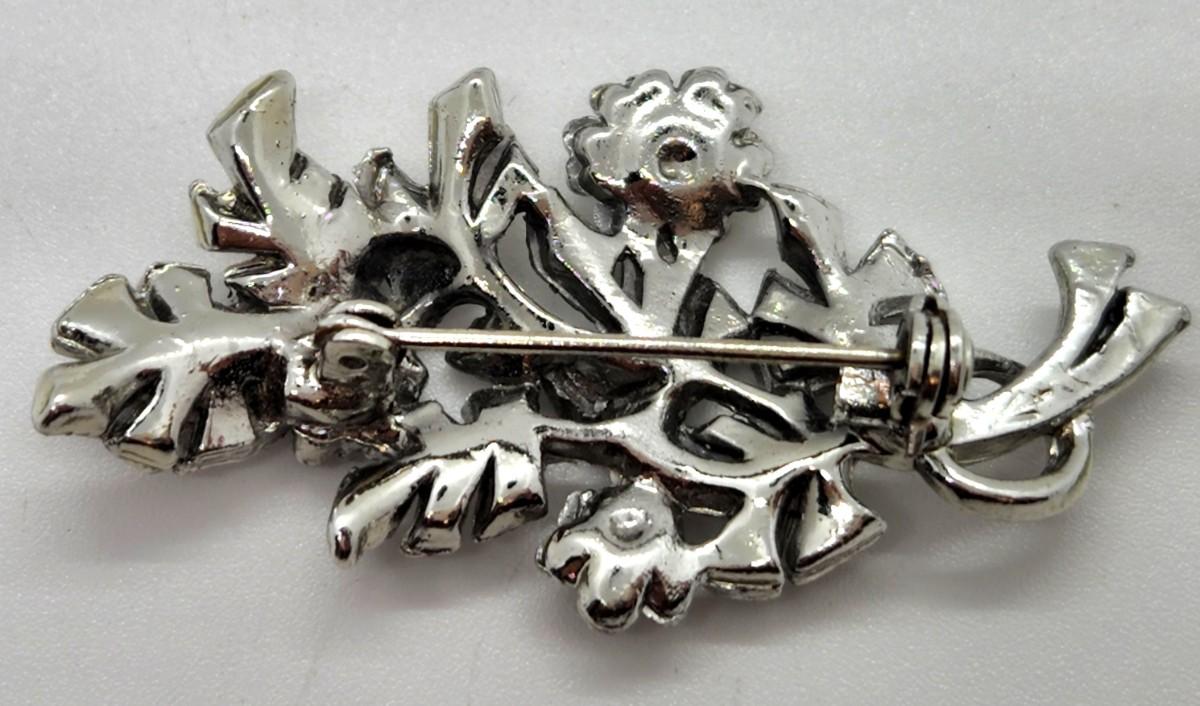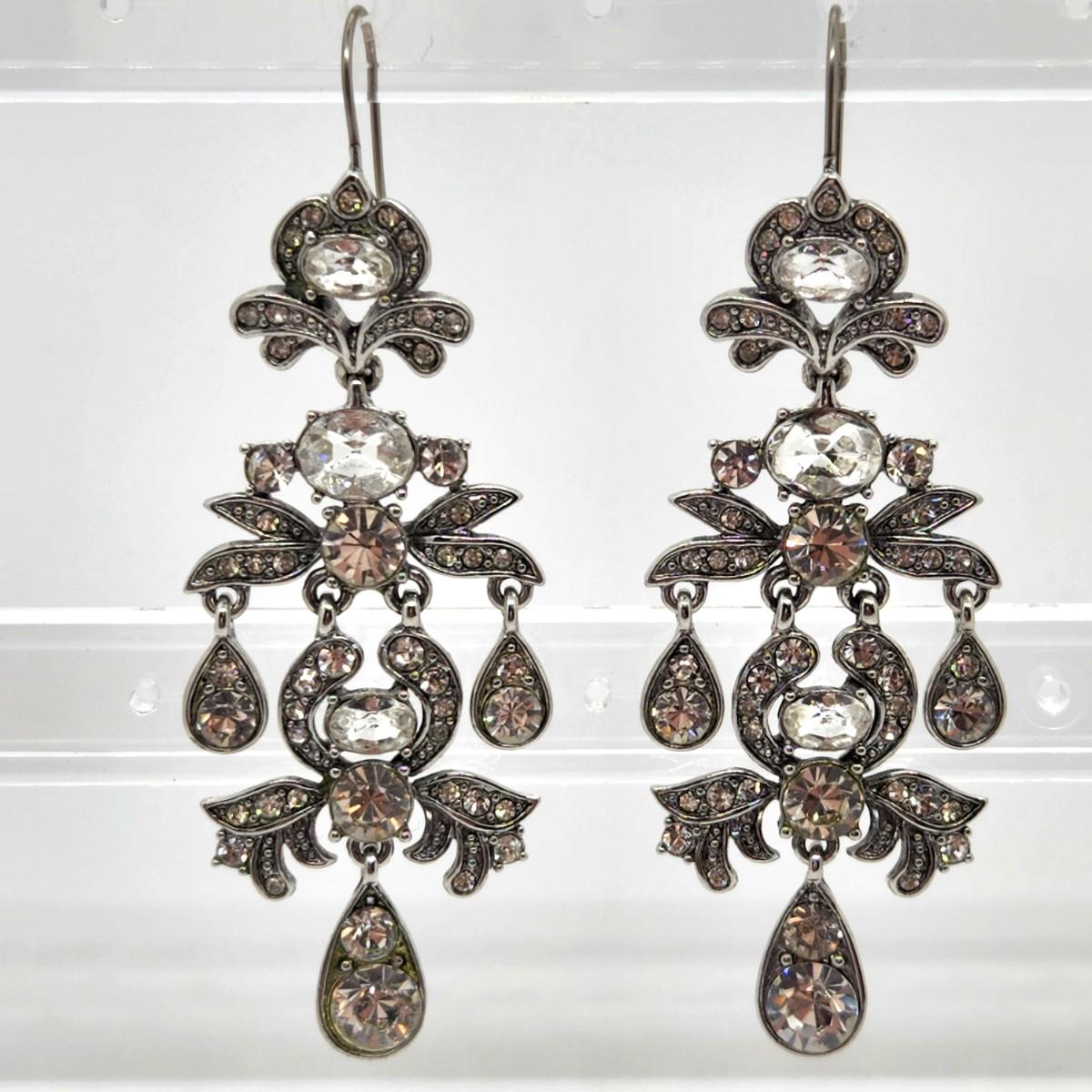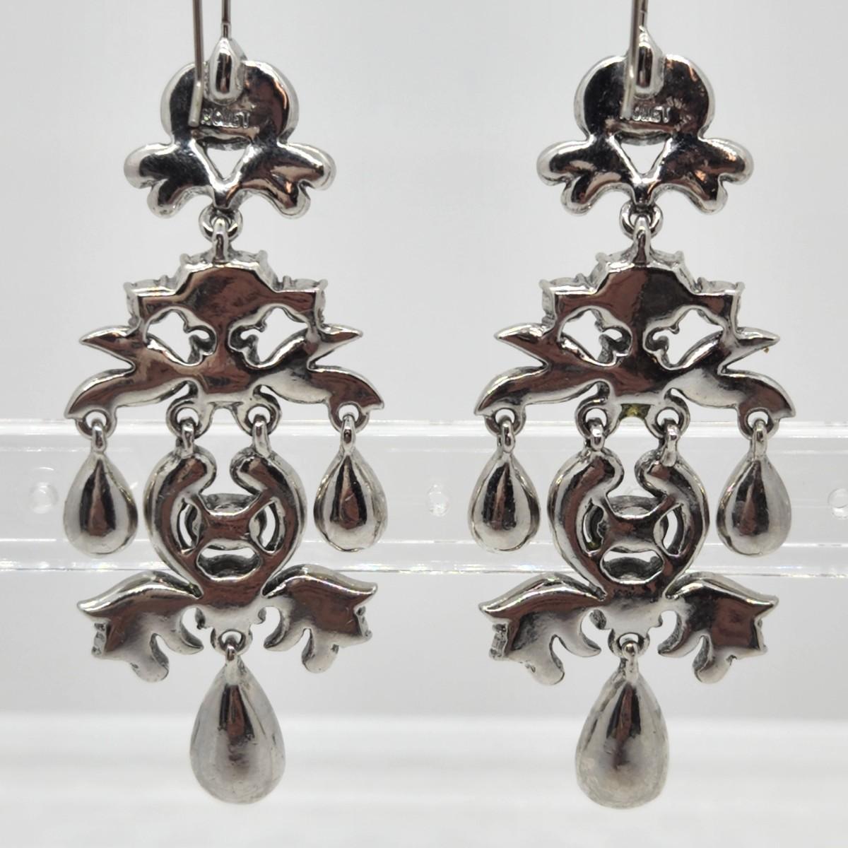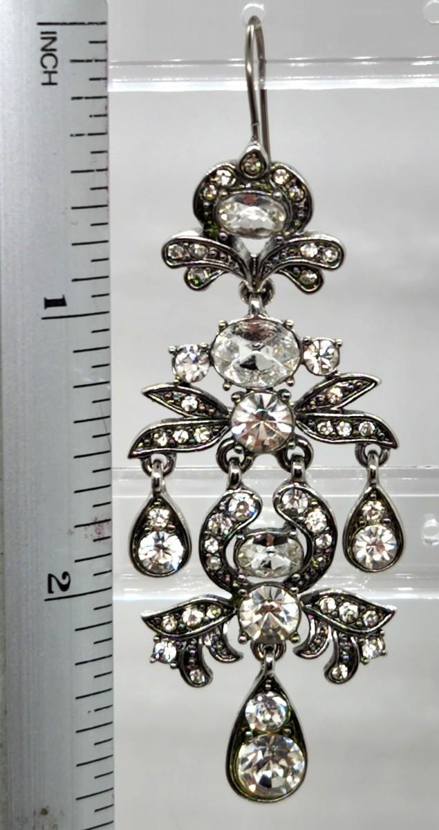 In this collection you are getting an adjustable aurora borealis necklace w/missing clasp hook, rhinestone chandelier earrings and a marcasite pin.