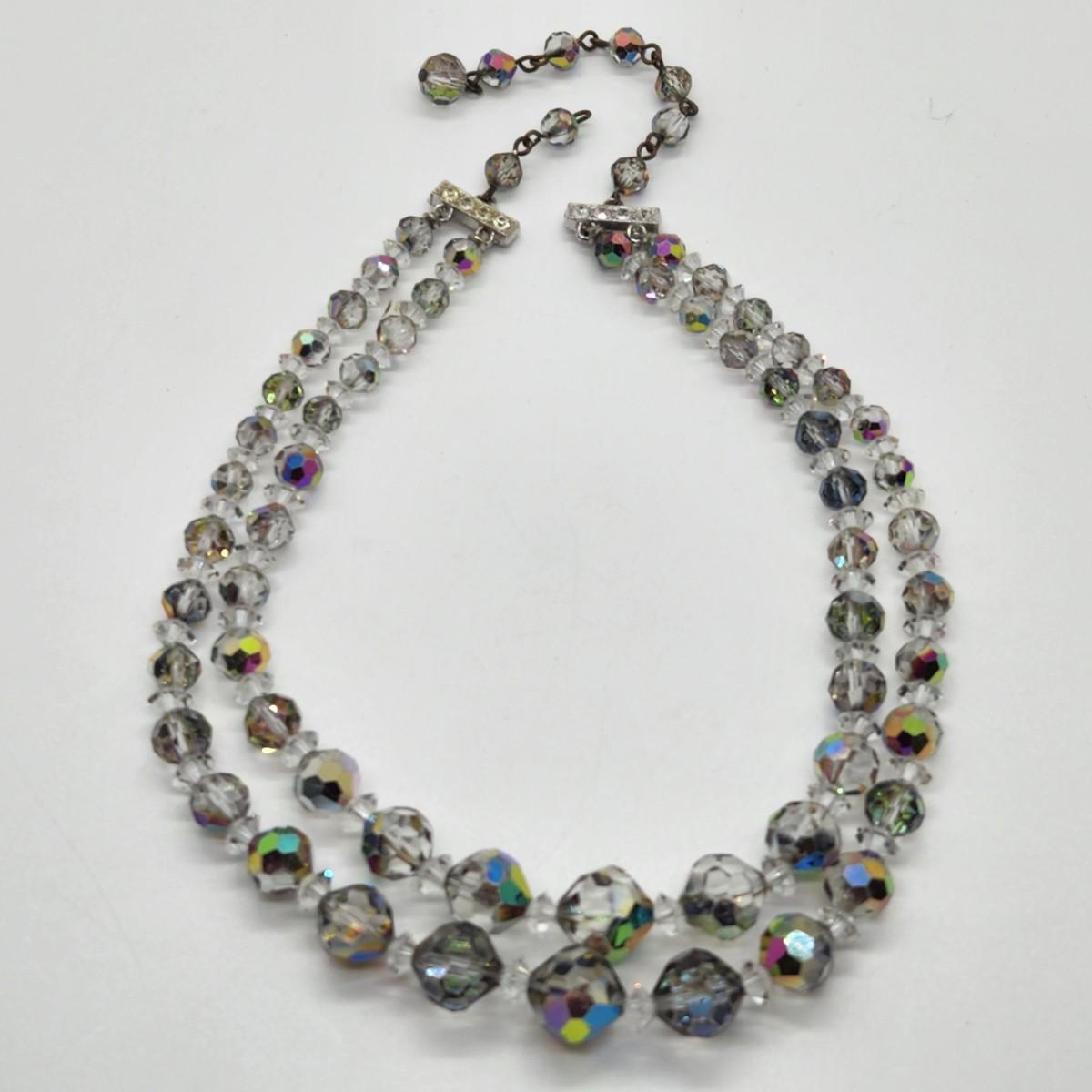 LOT 205J: Vintage Aurora Borealis Faceted Necklace, Monet Earrings, & Marcasite Pin